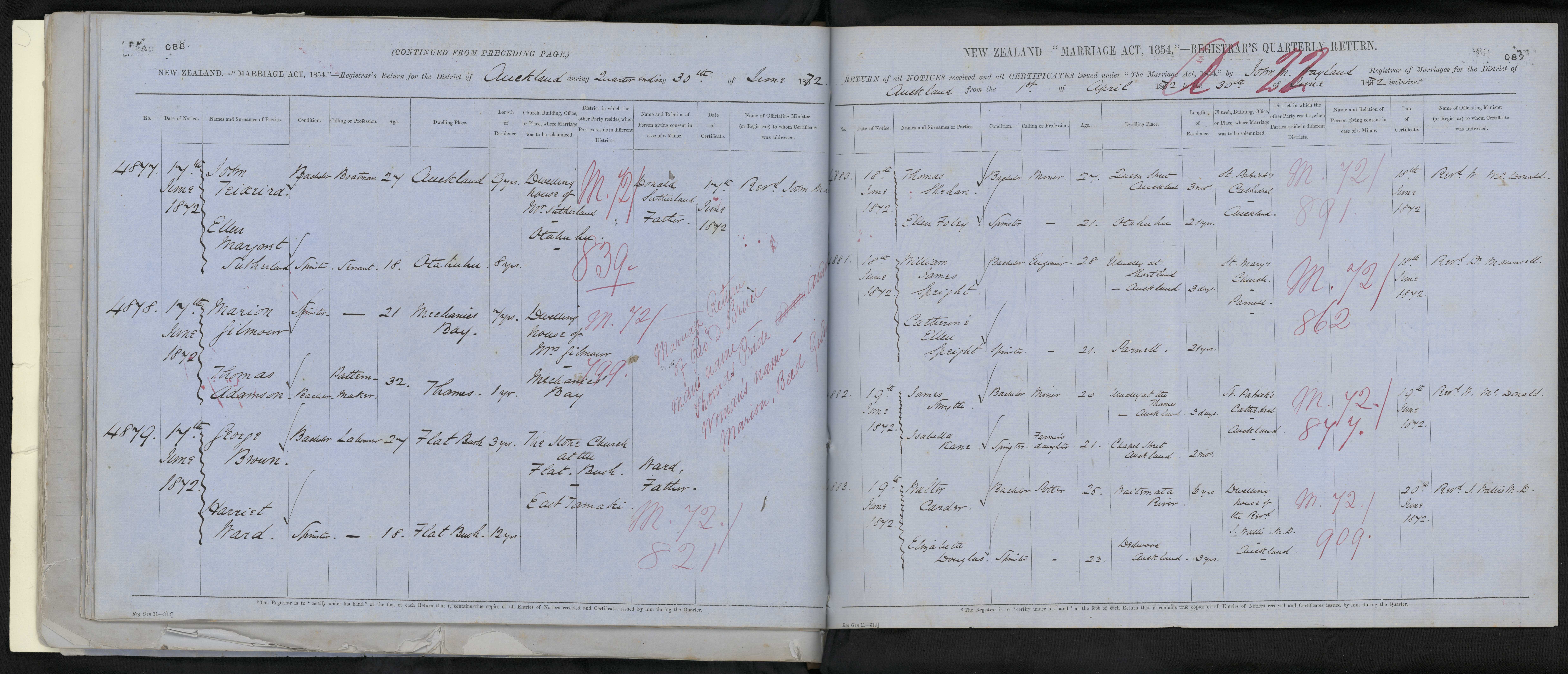 St. Patricks Cathedral - Auckland 72/877 19 June 1872 Revd. W. McDonald