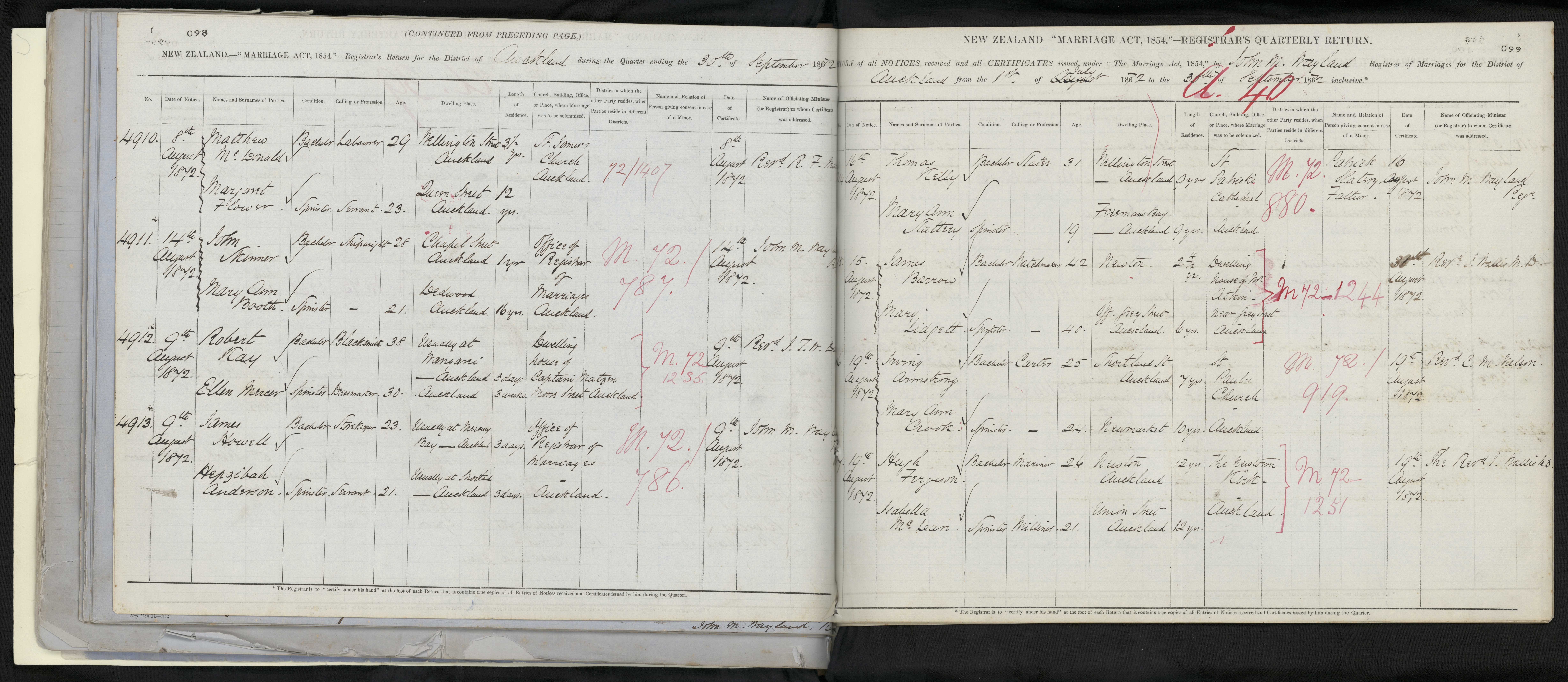 Office of Registrar of Marriages, Auckland 72/786 9 August 1872 John M. Wayland