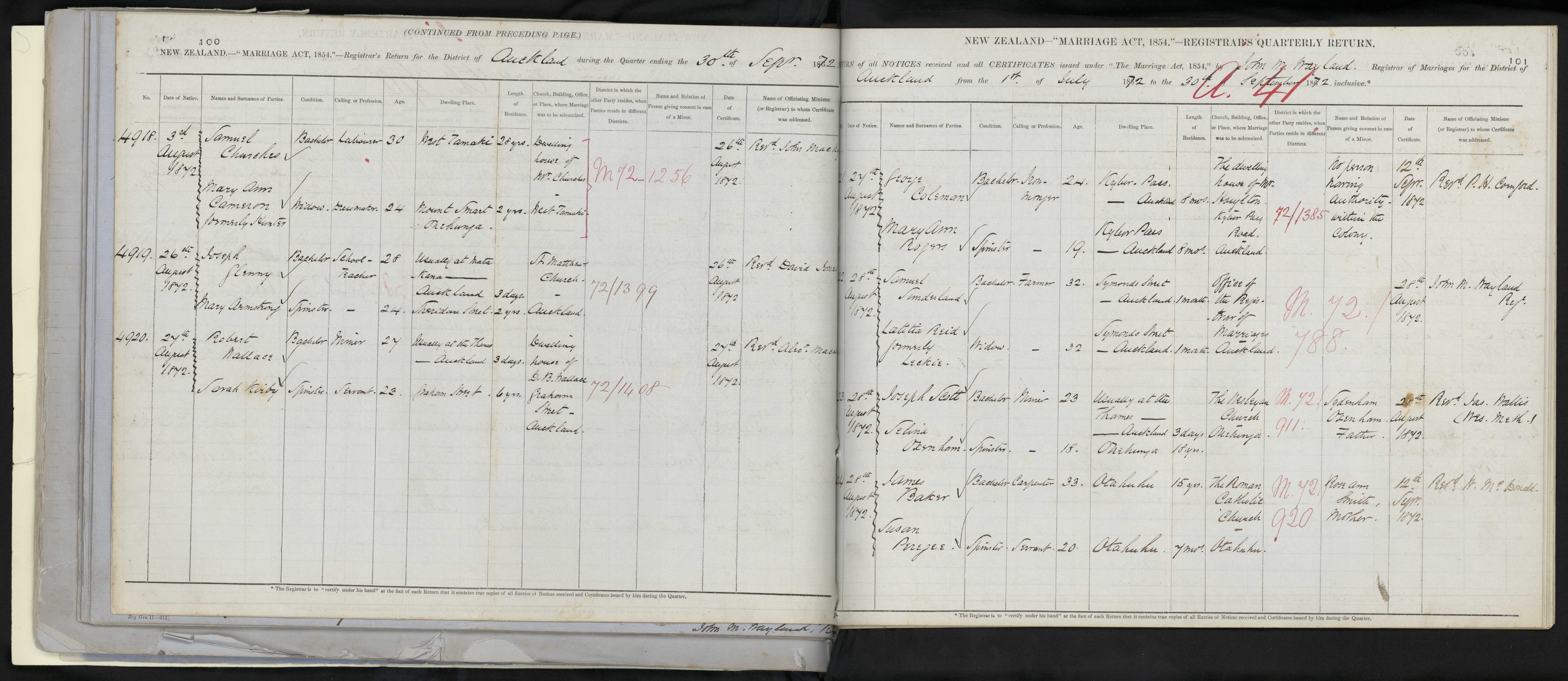 Office of the Registrar of Marriages, Auckland 72/788 28 August 1872 John M. Wayland, Regr.