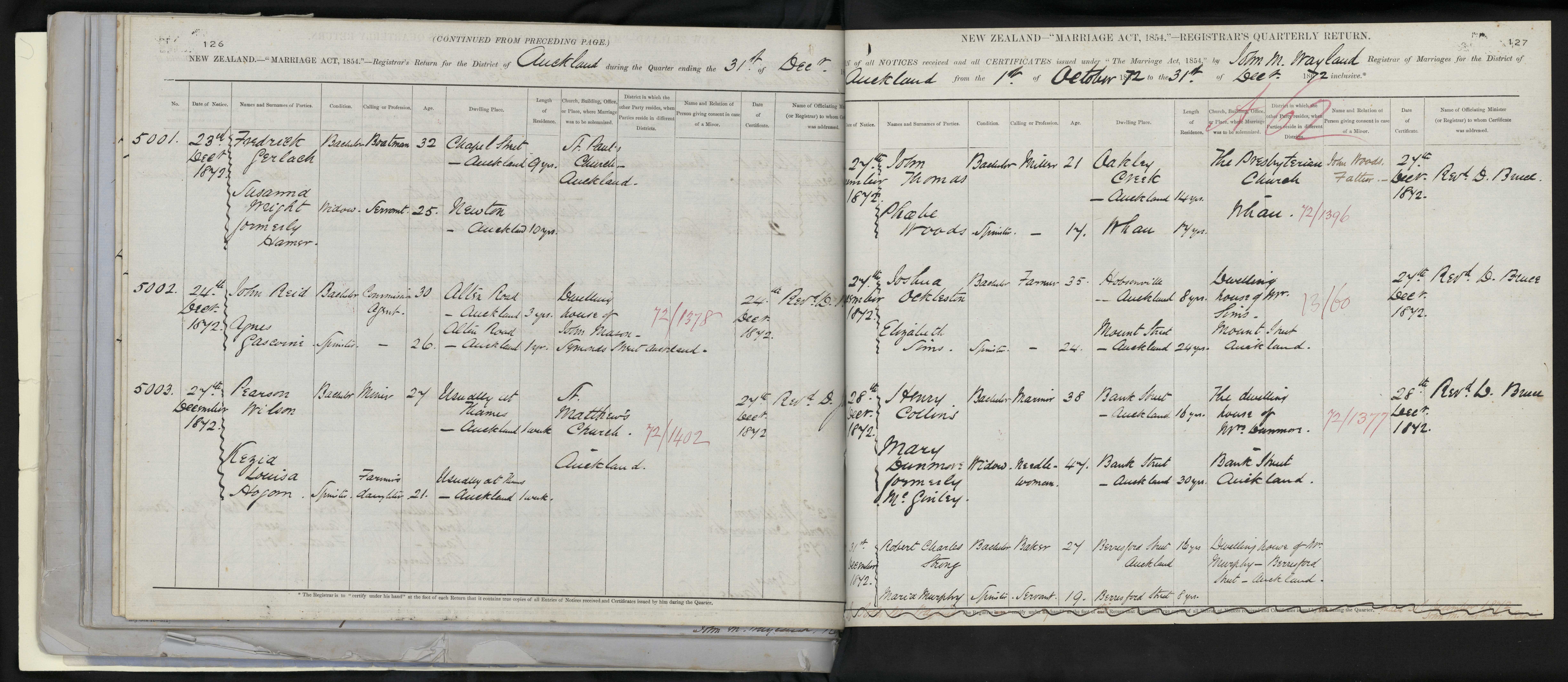 District of Auckland Quarter ending 31 December 1872 Registrar John M. Wayland
