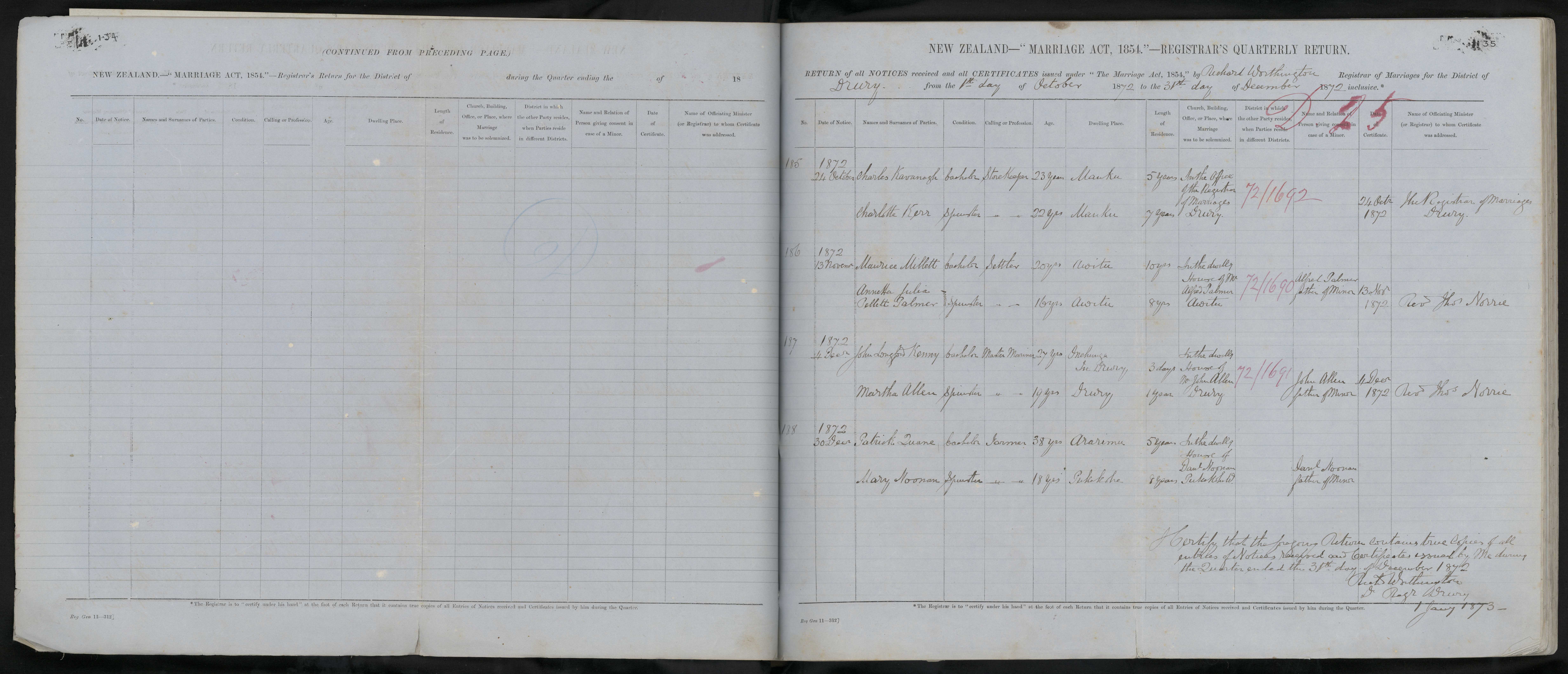 In the Office of the Registrar of Marriages, Drury 72/1692 24 October 1872 The Registrar of Marriages, Drury