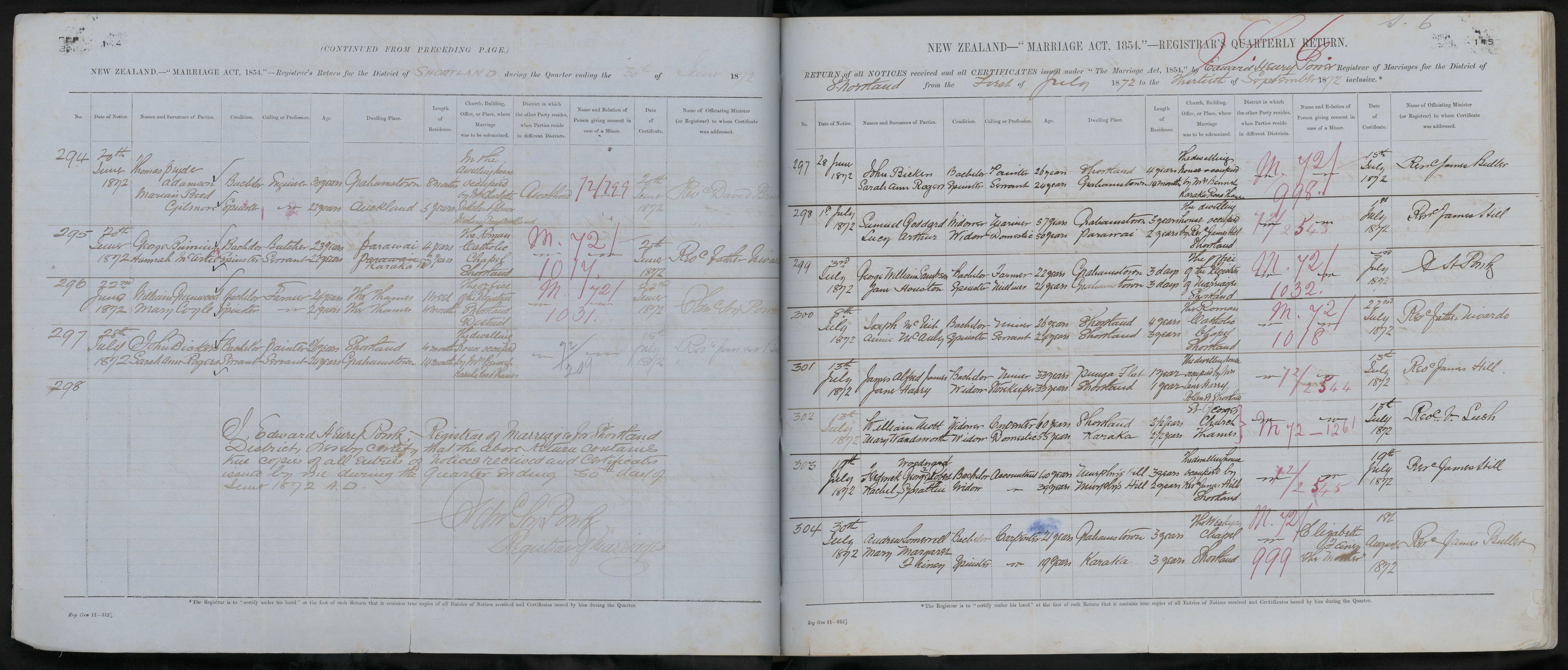 The Office at the Registrar, Shortland District 72/1031 22 June 1872 Edward Henry Power