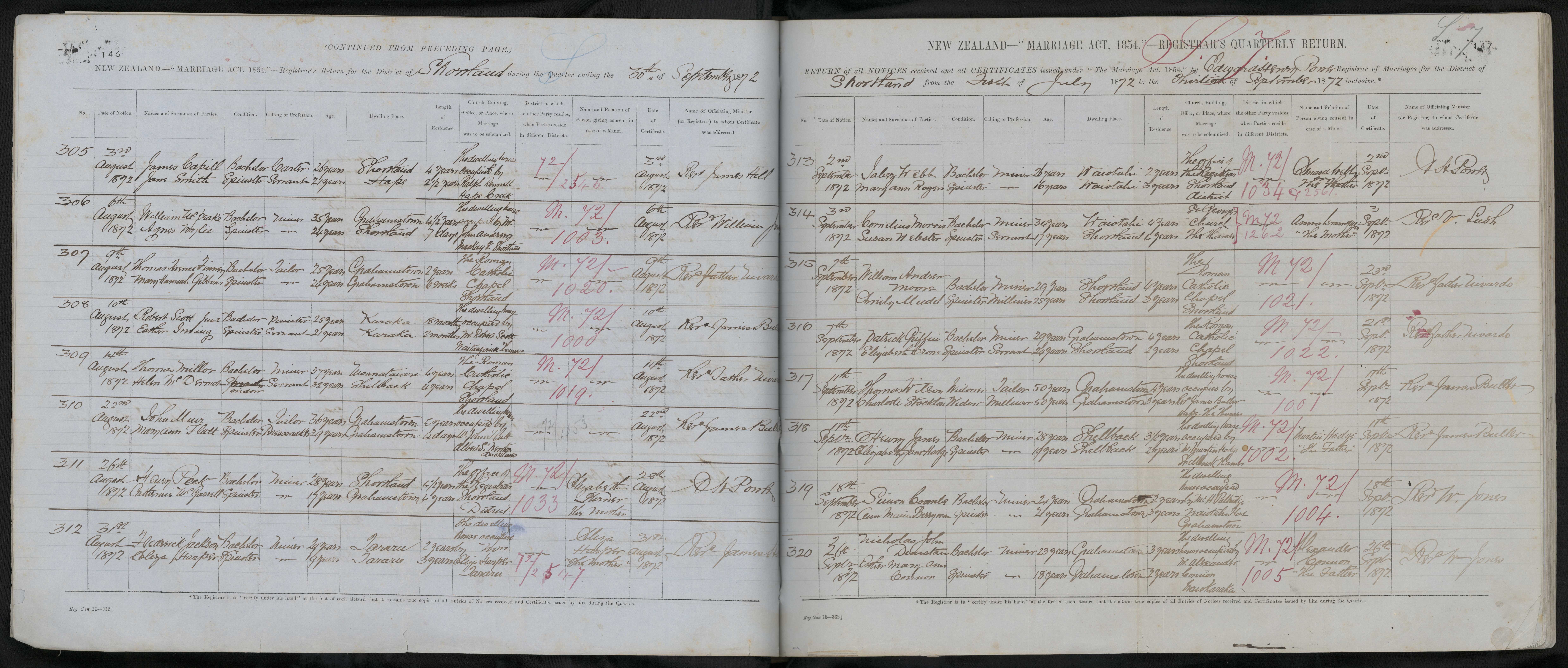 The dwelling house occupied by Mr. Robert Scott, Waitanguria, Thames | 72/1000 | 10 August 1872 | Revd. James Buller | ||||||||||||||||||||||||||||||||||||||||||||||||||