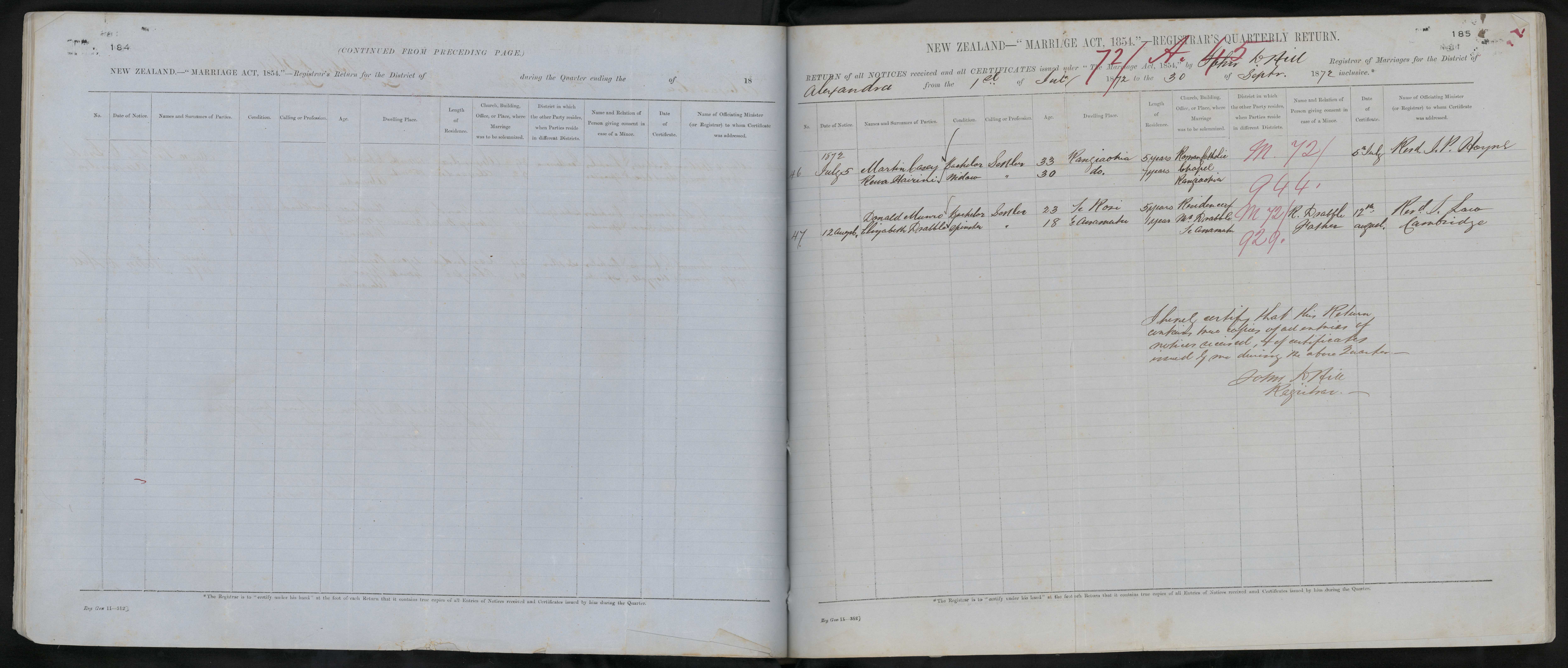 Date of Certificate 5 July 1872