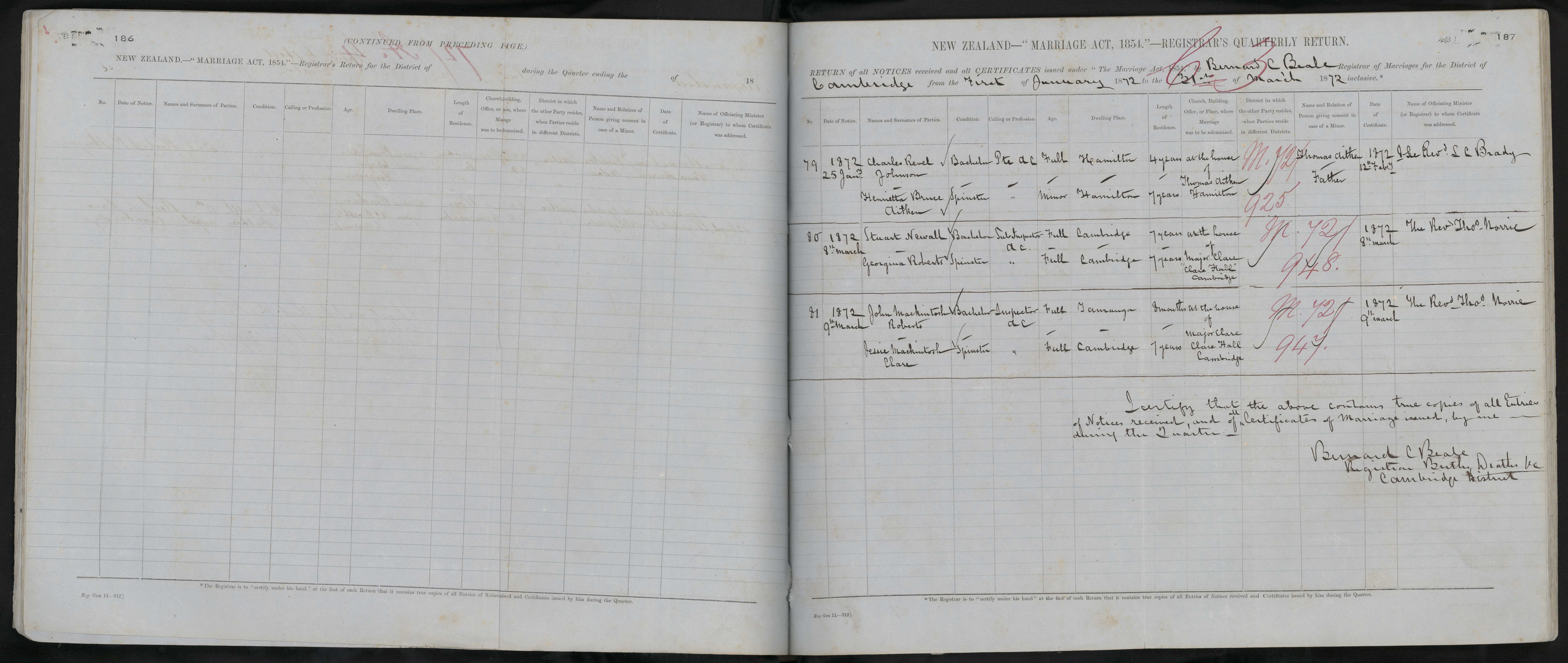 District of Cambridge Quarter ending 31 March 1872 Registrar Bernard C. Beale