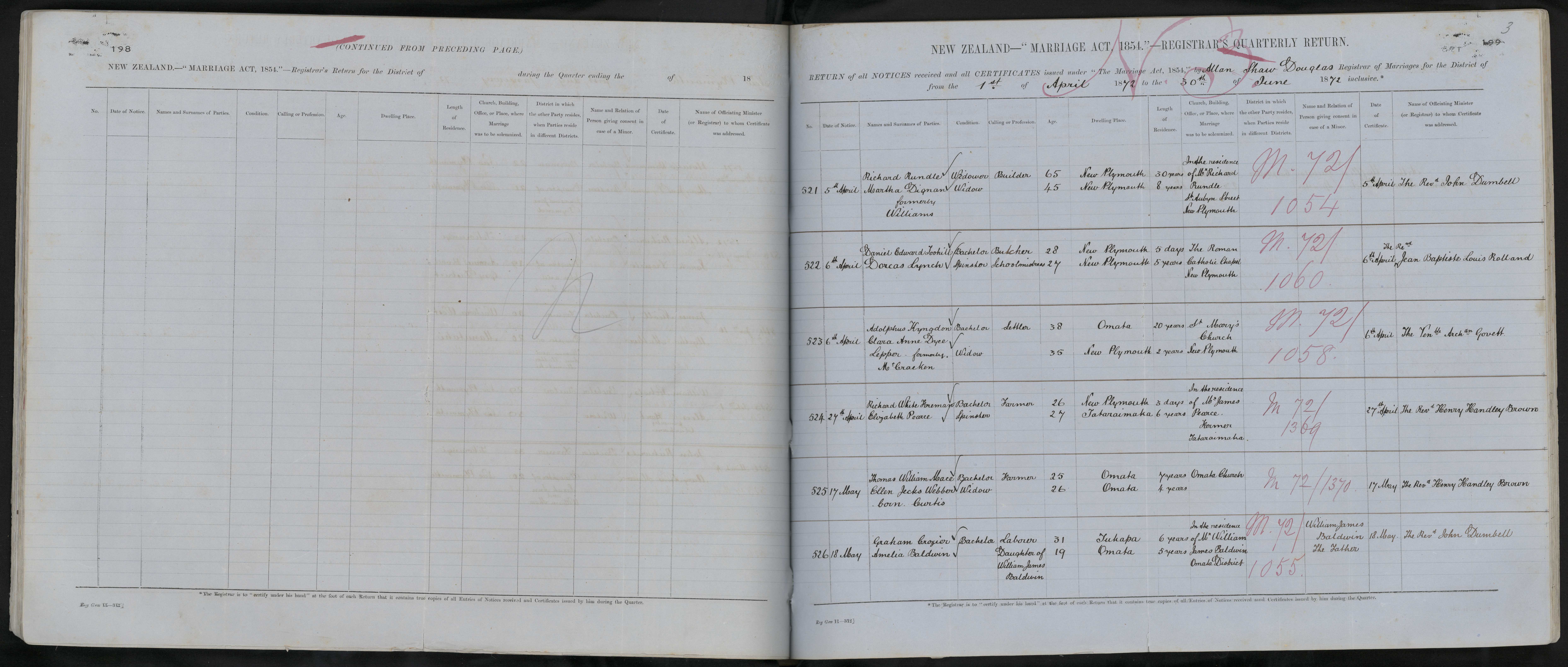 In the residence of Mr Richard Rundle St. Aubyn Street New Plymouth | 721 | 5 April 1872 | The Revd John Dumbell | ||||||||||||||||||||||||||||||||||||||||||||||||||