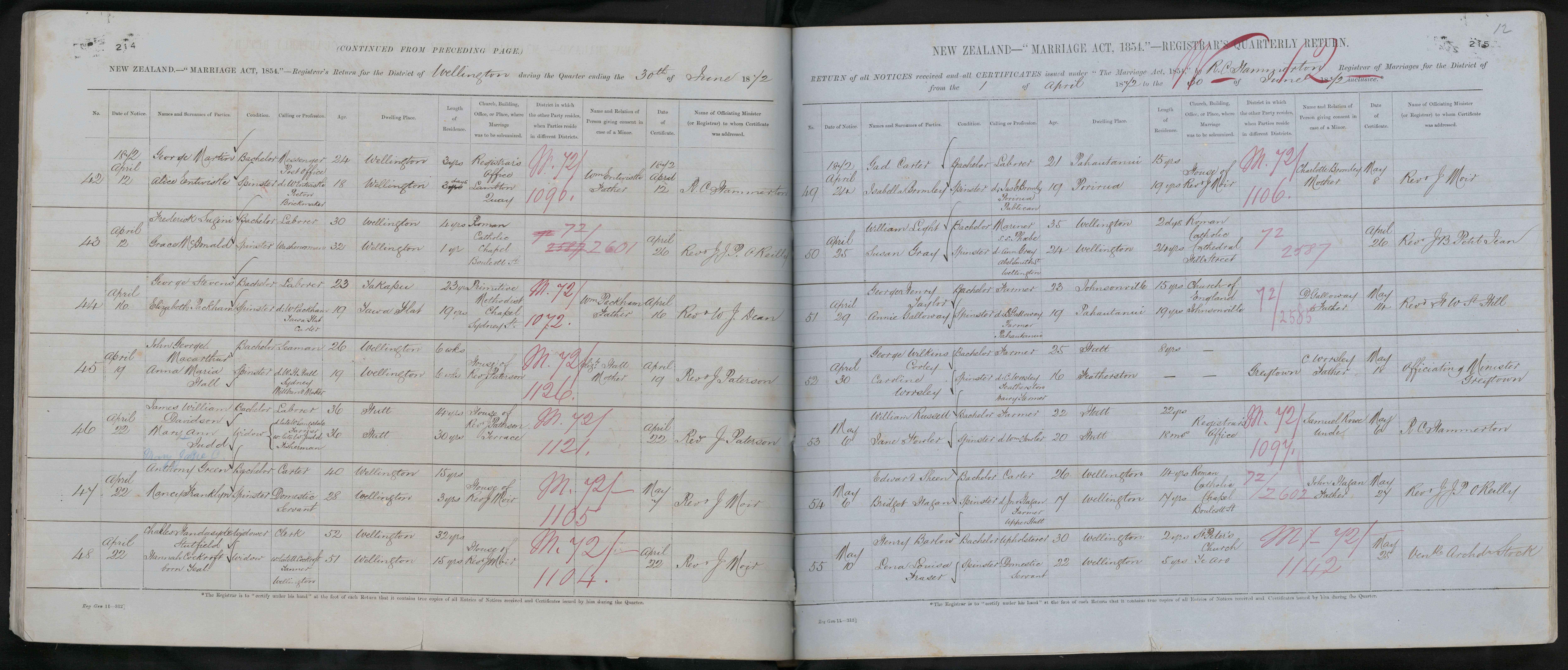 Roman Catholic Chapel, Boulcott Street | 72/2601 | 26 April 1872 | Revd. J.J.P. O'Reilly | ||||||||||||||||||||||||||||||||||||||||||||||||||