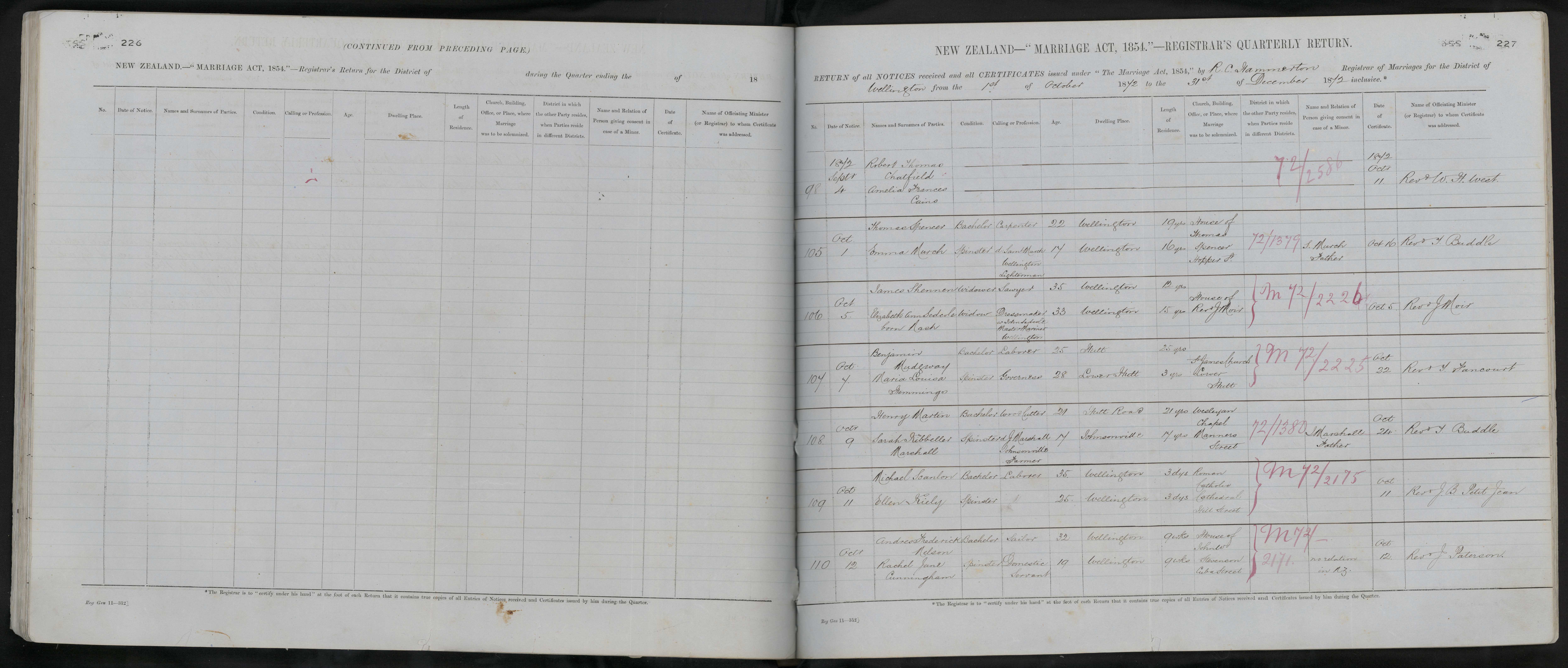 St James Church, Lower Hutt | 72/2225 | 22 October 1872 | Revd. T. Fancourt | ||||||||||||||||||||||||||||||||||||||||||||||||||