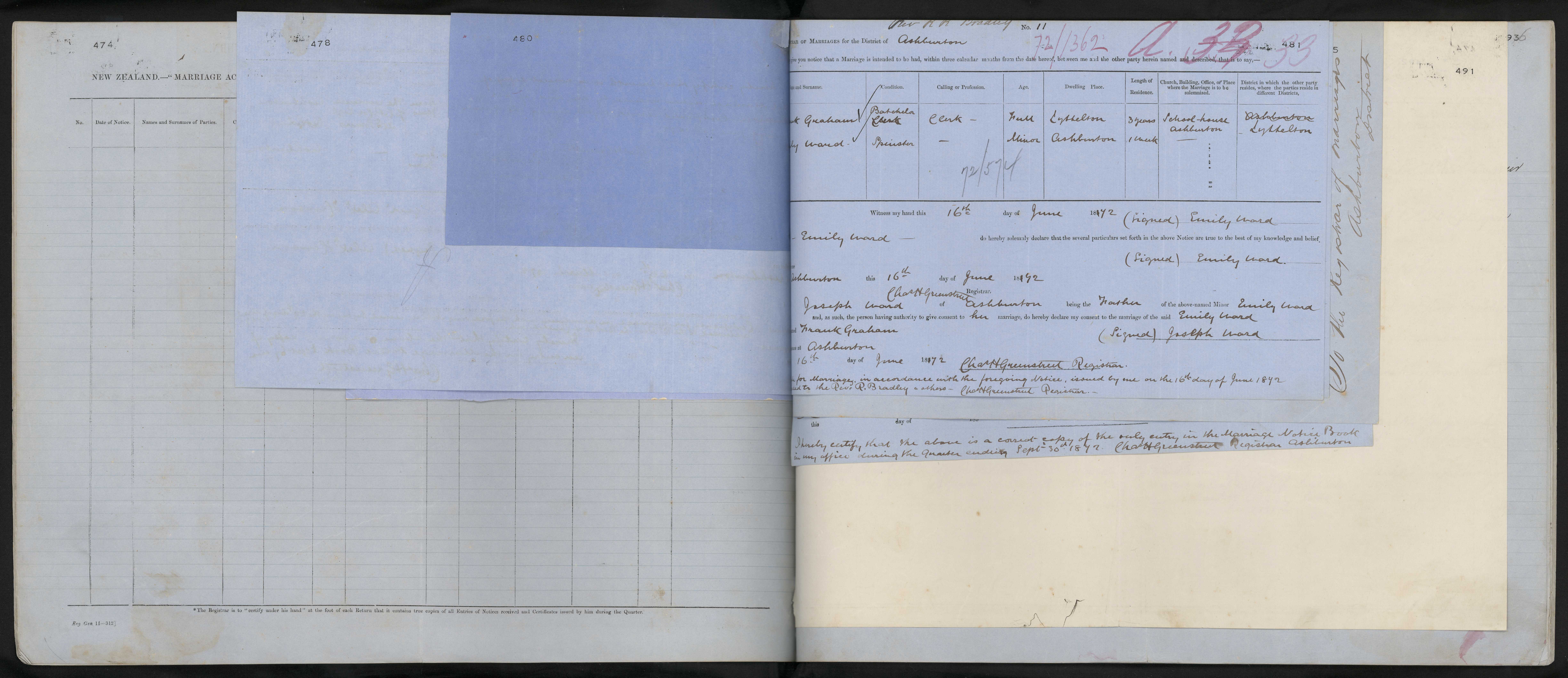 Reference: Registrar-General of Births, Deaths and Marriages, Notices of intention to marry, Series 8937, R2840384, Archives New Zealand Te Rua Mahara o te Kāwanatanga, Wellington