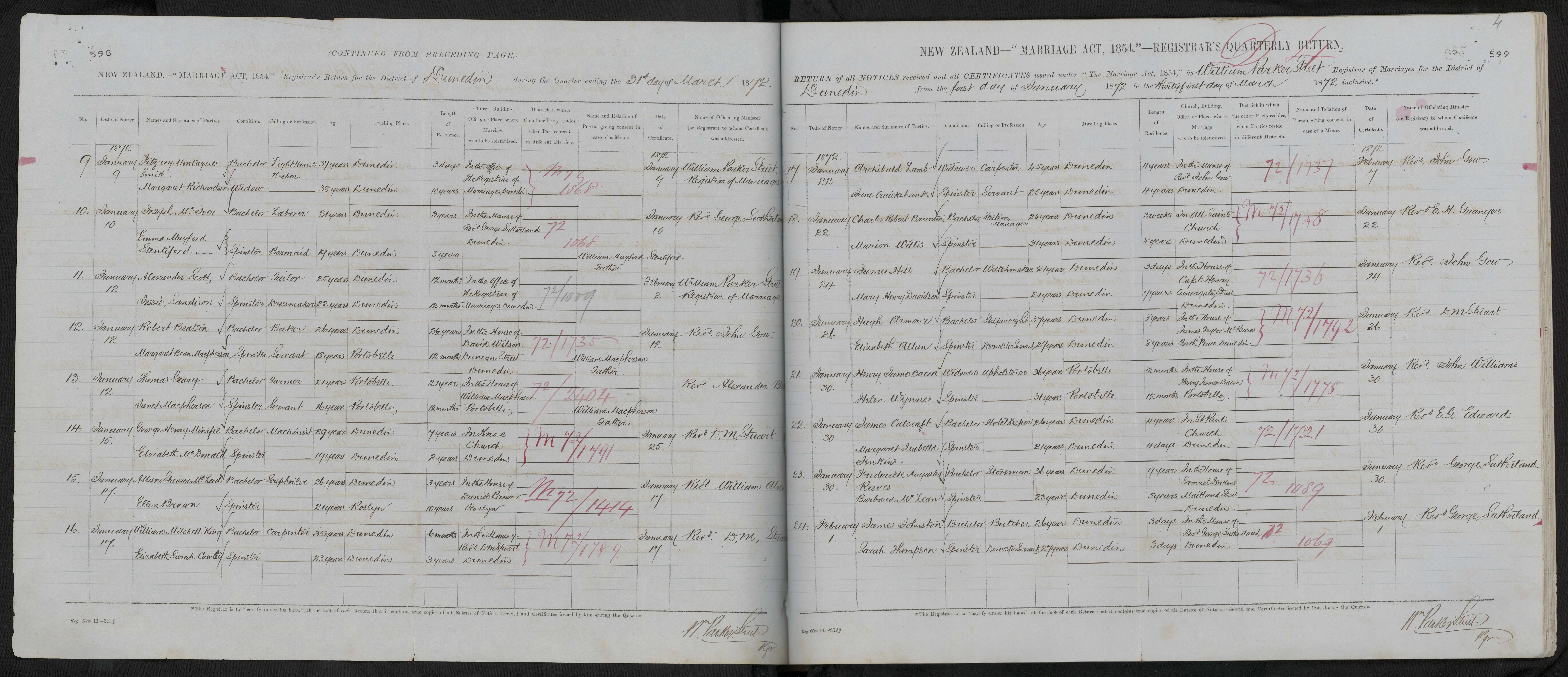 In the office of the Registrar of Marriages, Dunedin | 72/1009 | 2 February 1872 | William Parker Street, Registrar of Marriages | ||||||||||||||||||||||||||||||||||||||||||||||||||