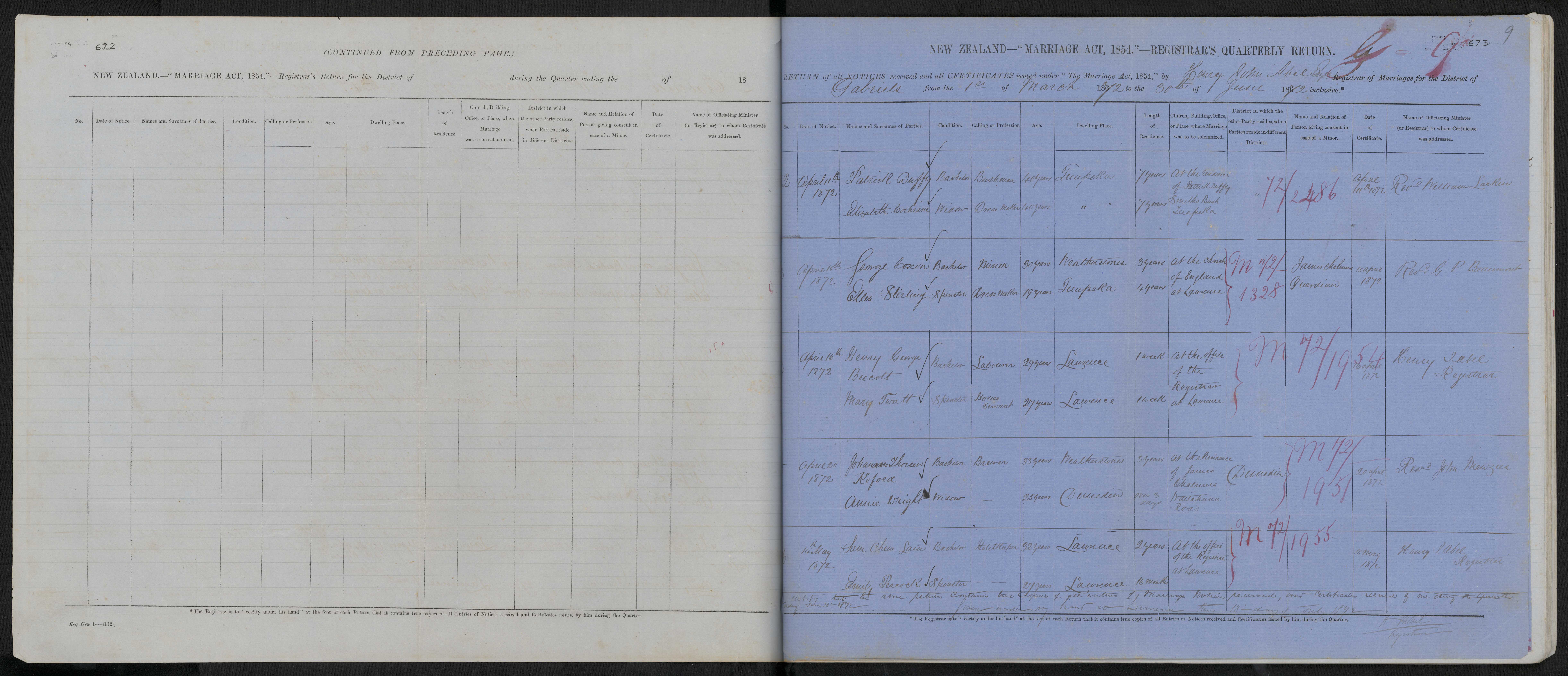 at the Office of the Registrar at Laurence 72/1955 15 May 1872 Henry J Abel, Registrar
