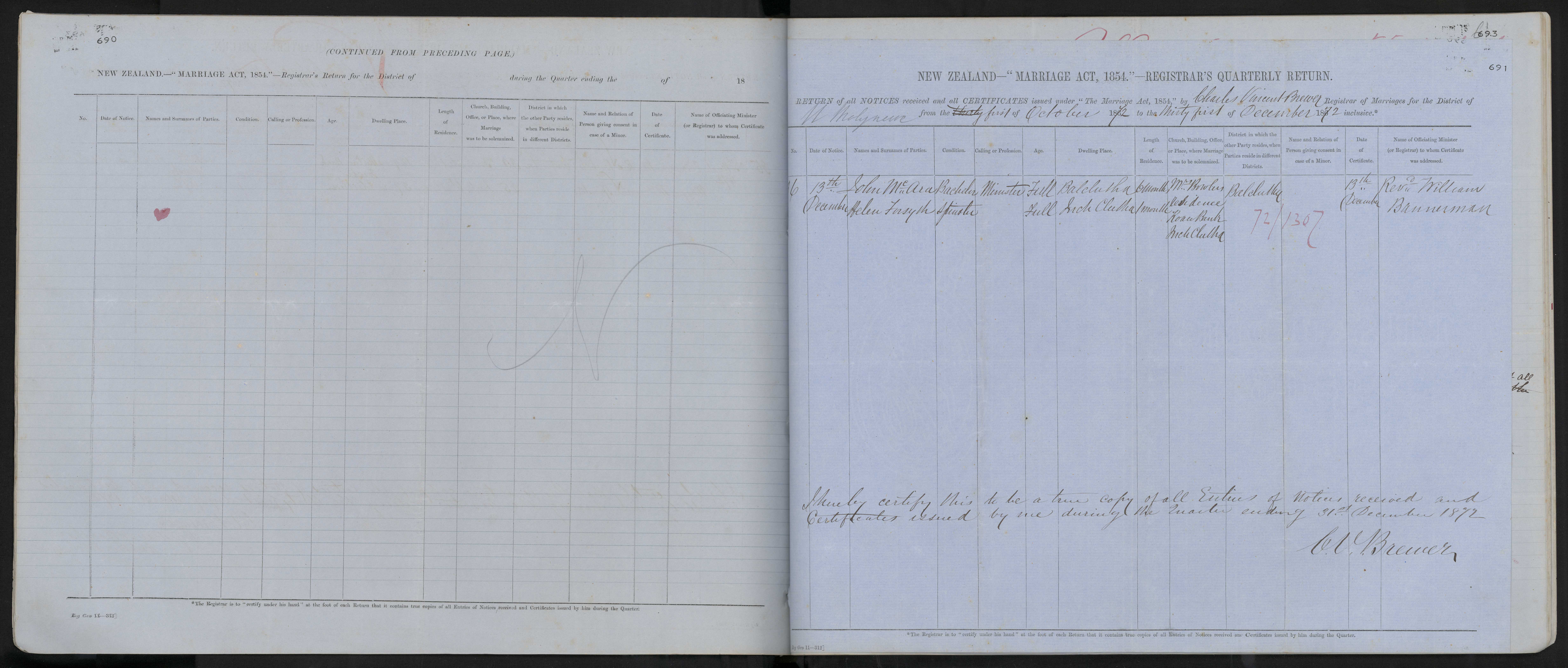 District of North Molyneux Quarter ending 31 December 1872 Registrar Charles Vincent Brewer