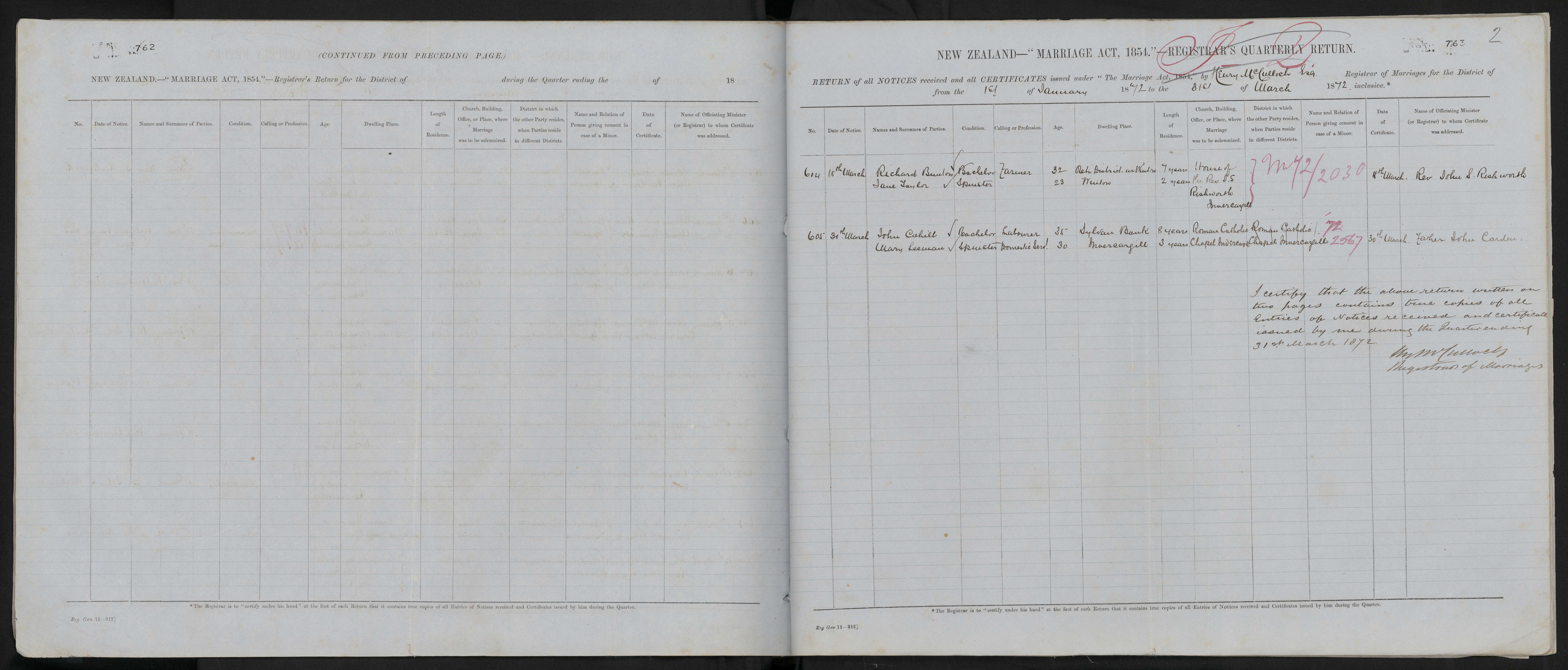 Reference: Registrar-General of Births, Deaths and Marriages, Notices of intention to marry, Series 8937, R2840384, Archives New Zealand Te Rua Mahara o te Kāwanatanga, Wellington