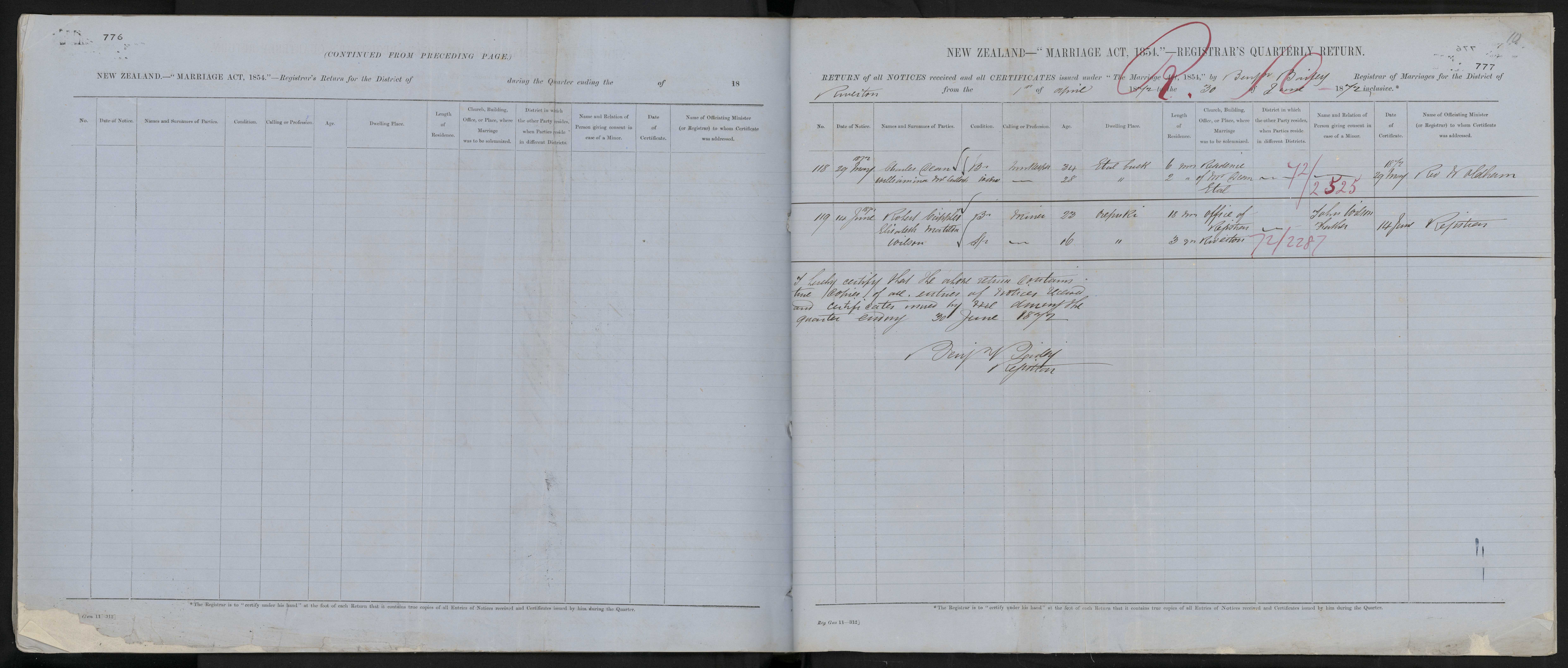 Date of Certificate 14 June 1872