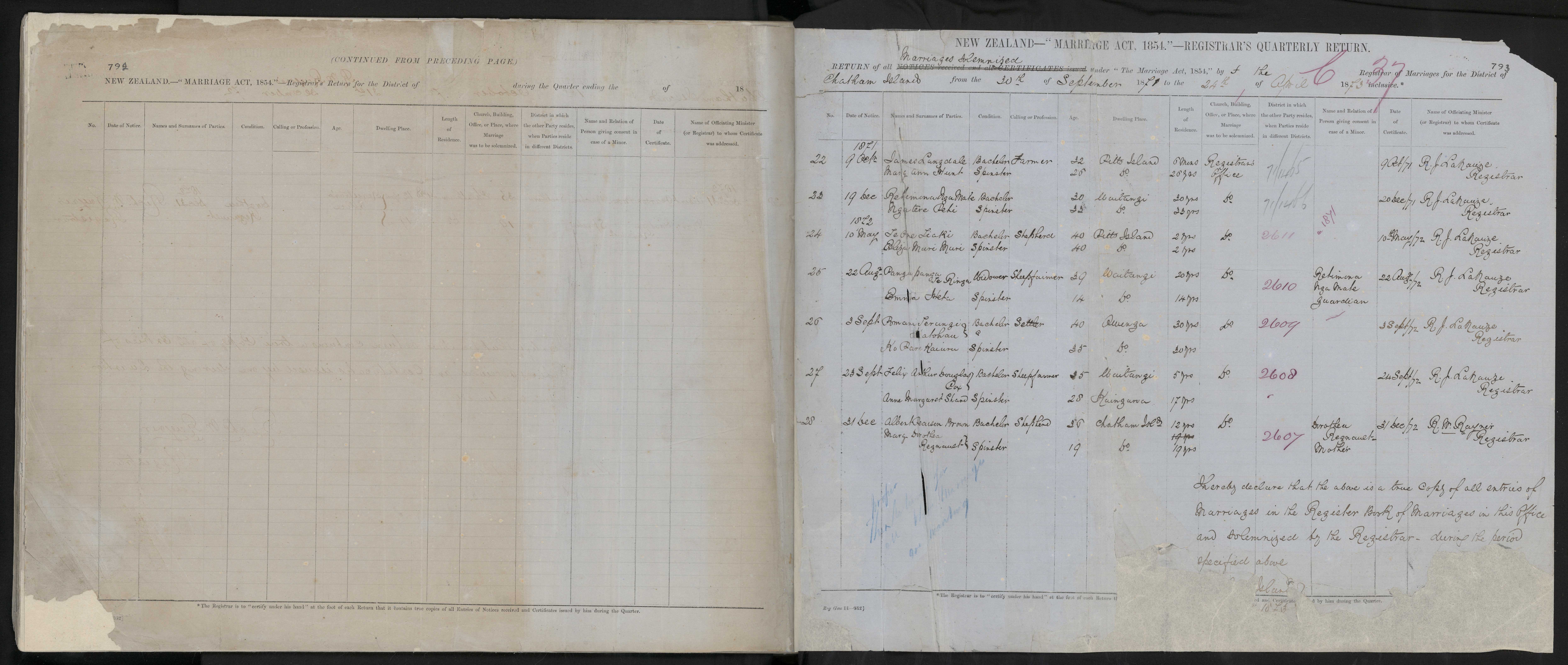 Registrar's Office | 72/2608 | 24 September 1872 | R.J. Lahauze Registrar | ||||||||||||||||||||||||||||||||||||||||||||||||||