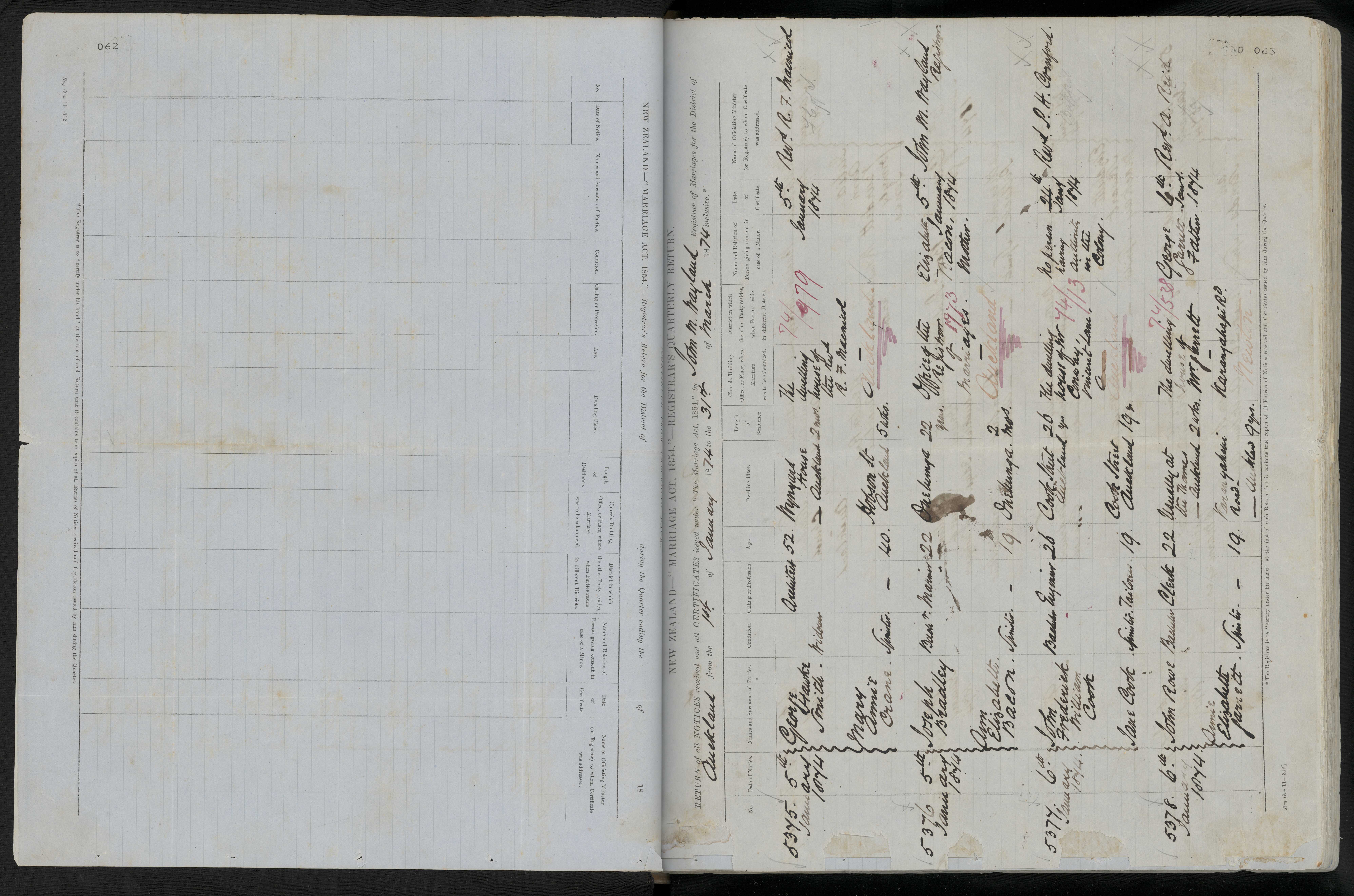 District of Auckland Quarter ending 31 March 1874 Registrar John M. Wayland
