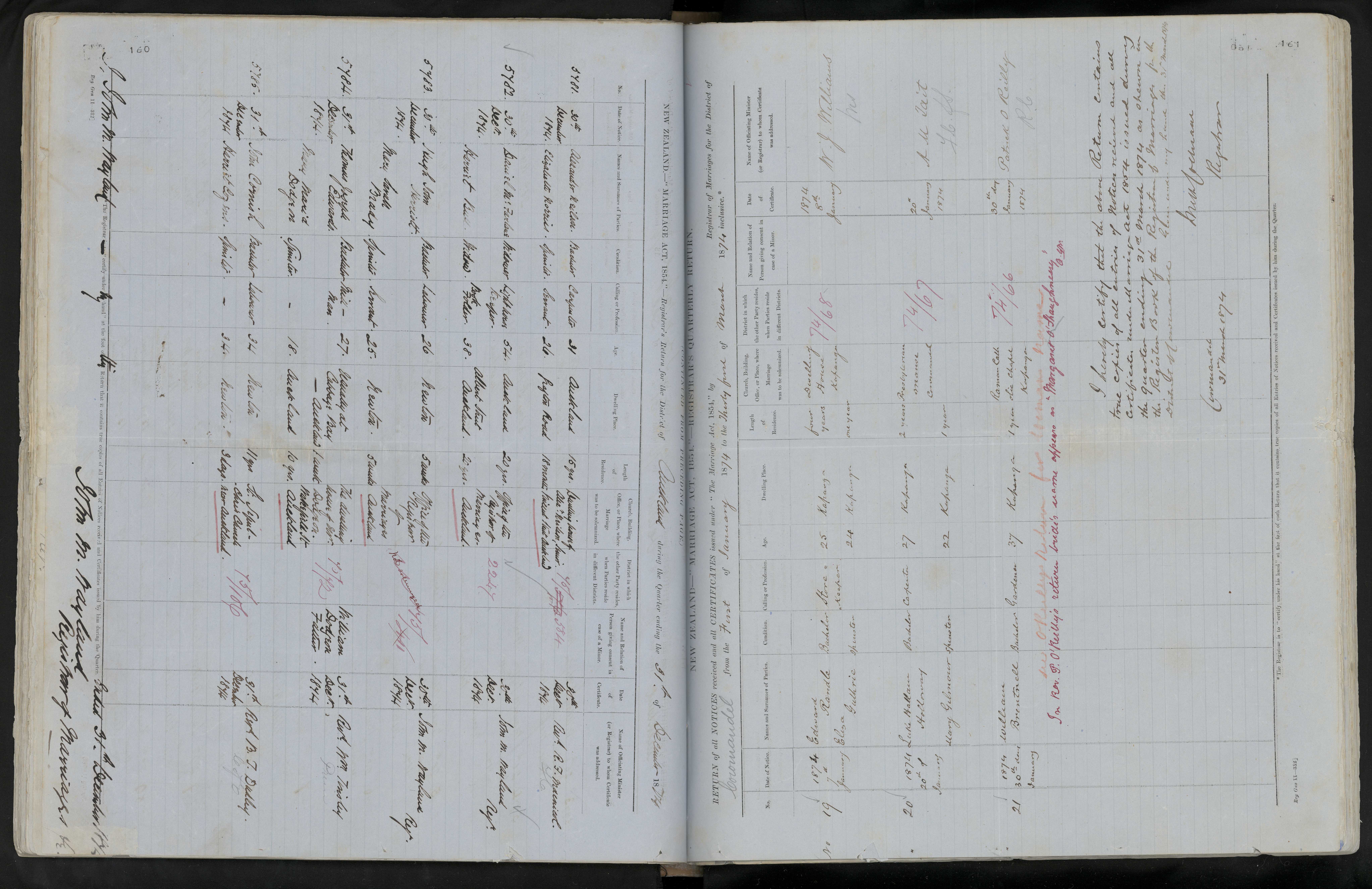 Office of Registrar of Marriages, Auckland 75/411 30 December 1874 John M. Wayland, Regr.