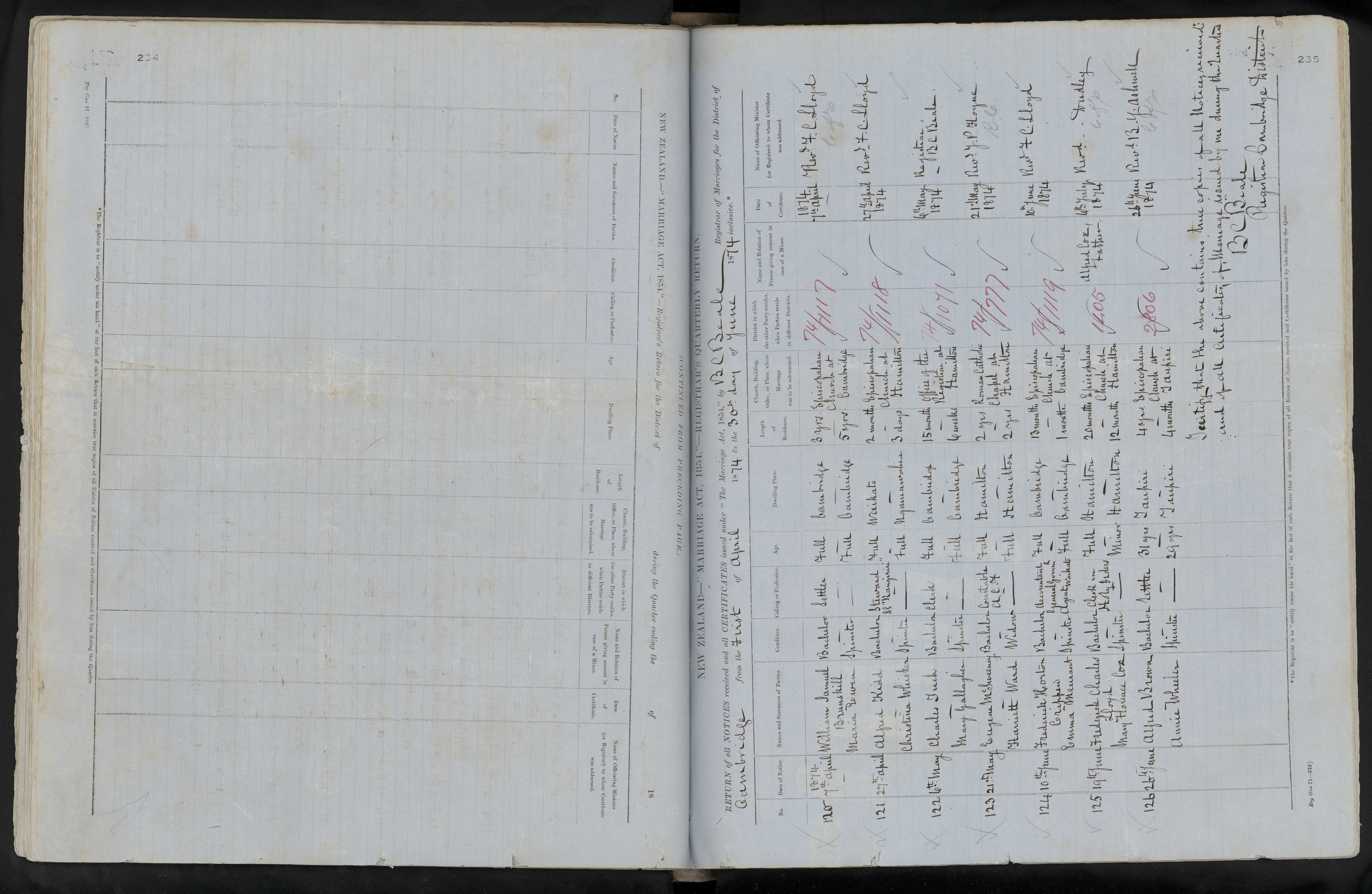 Office of the Registrar at Hamilton | 74/1071 | 6 May 1874 | Registrar, B. C. Beale | ||||||||||||||||||||||||||||||||||||||||||||||||||