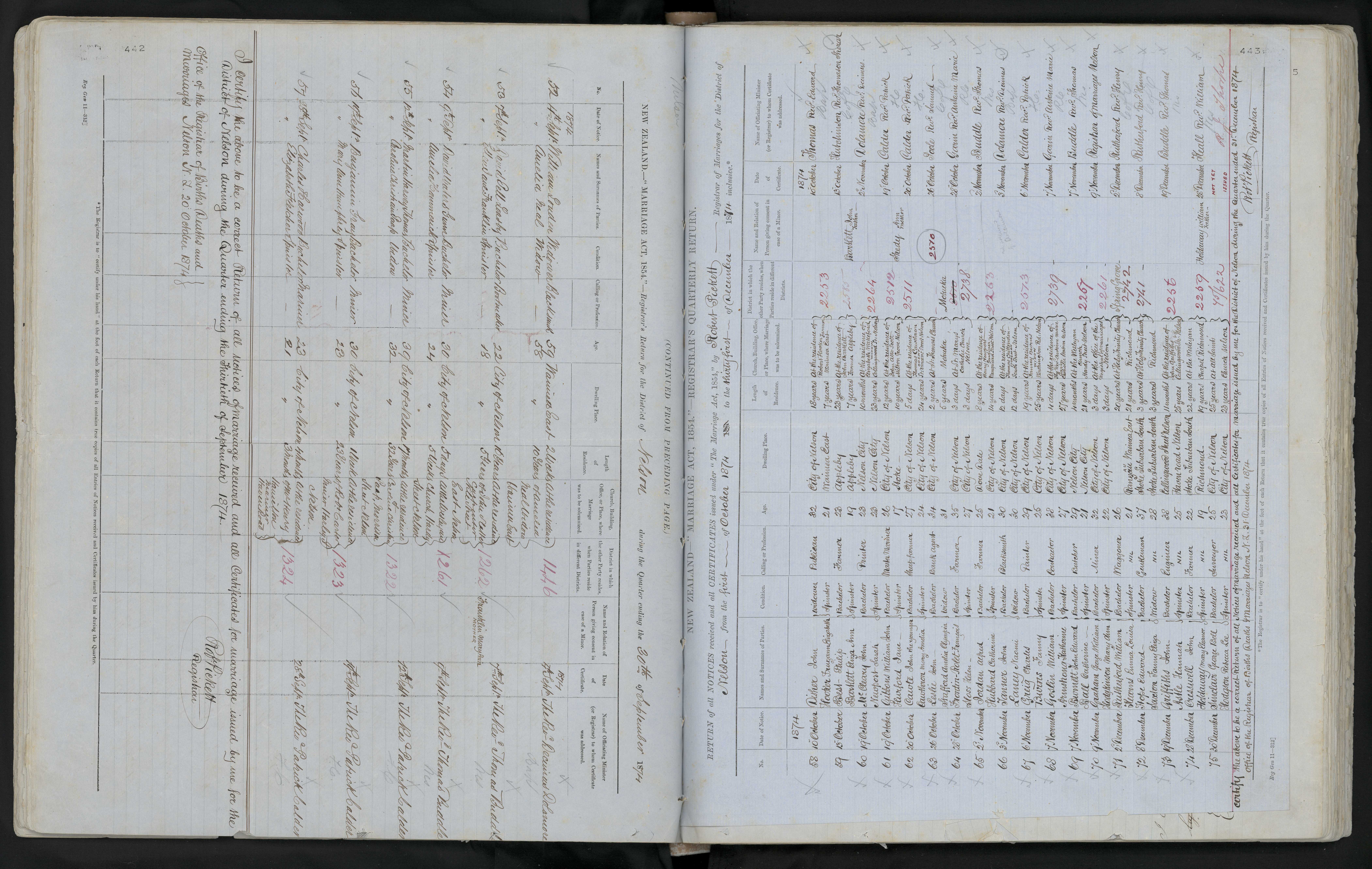 at the residence of Robt. Carter Esqr. miner, Harley St., Nelson | 74/1323 | 19 September 1874 | The Revd Patrick Calder | ||||||||||||||||||||||||||||||||||||||||||||||||||
