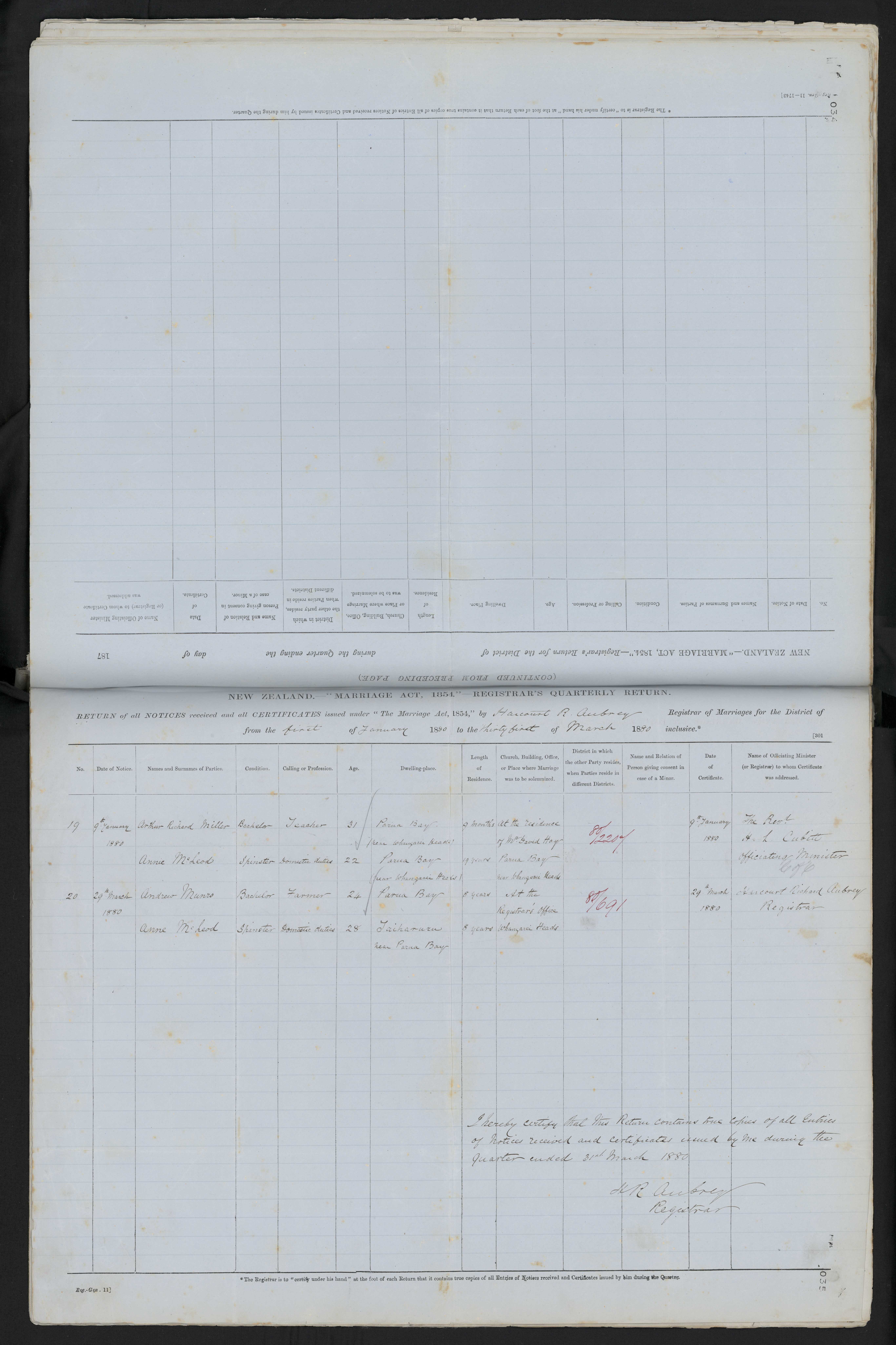 At the Registrar's Office, Whangarei Heads 80/691 29 March 1880 Harcourt Richard Aubrey, Registrar