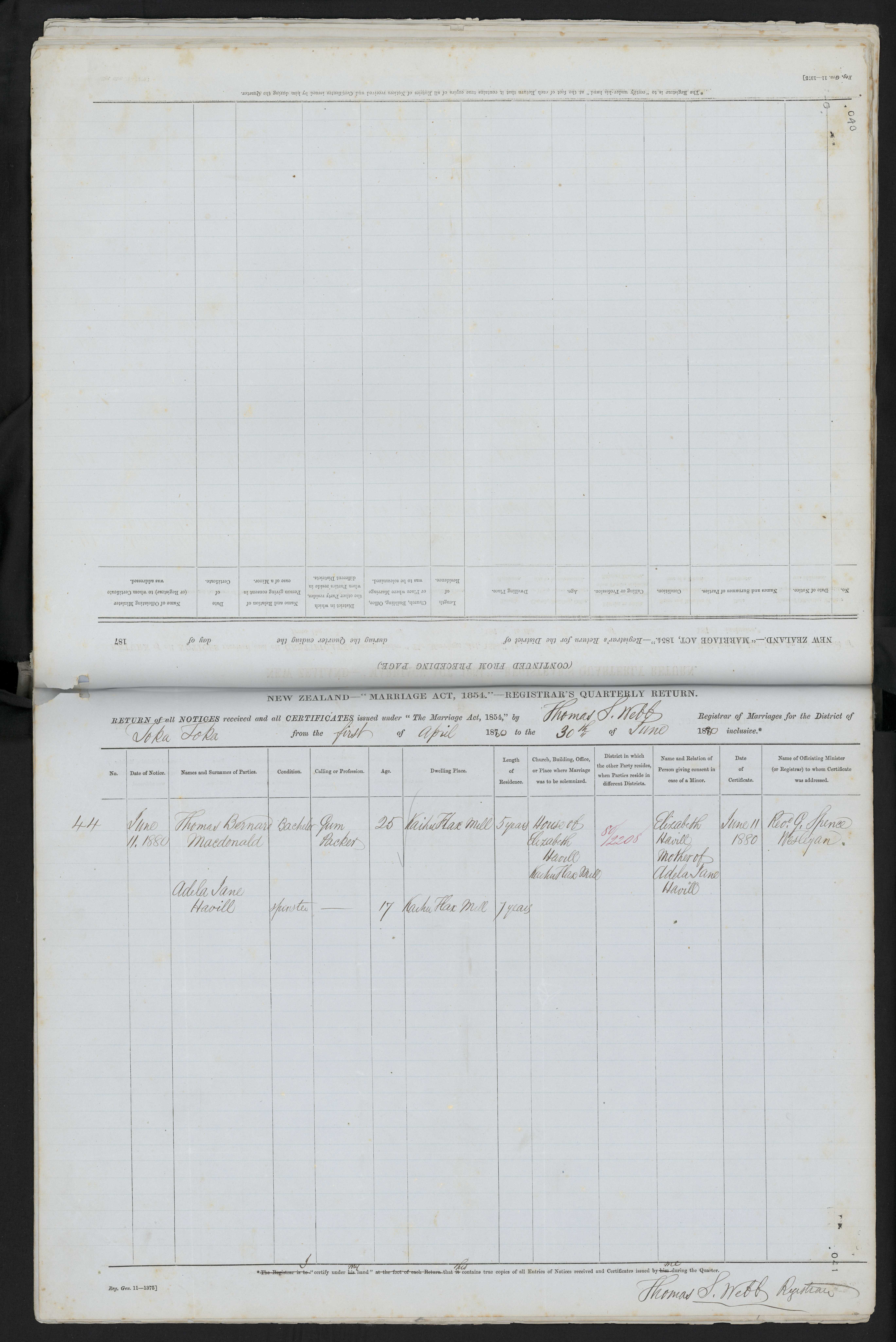 House of Elizabeth Havill 80/2208 Elizabeth Havill, mother of [bride] June 11 1880 Rev. C. Spence, Wesleyan
