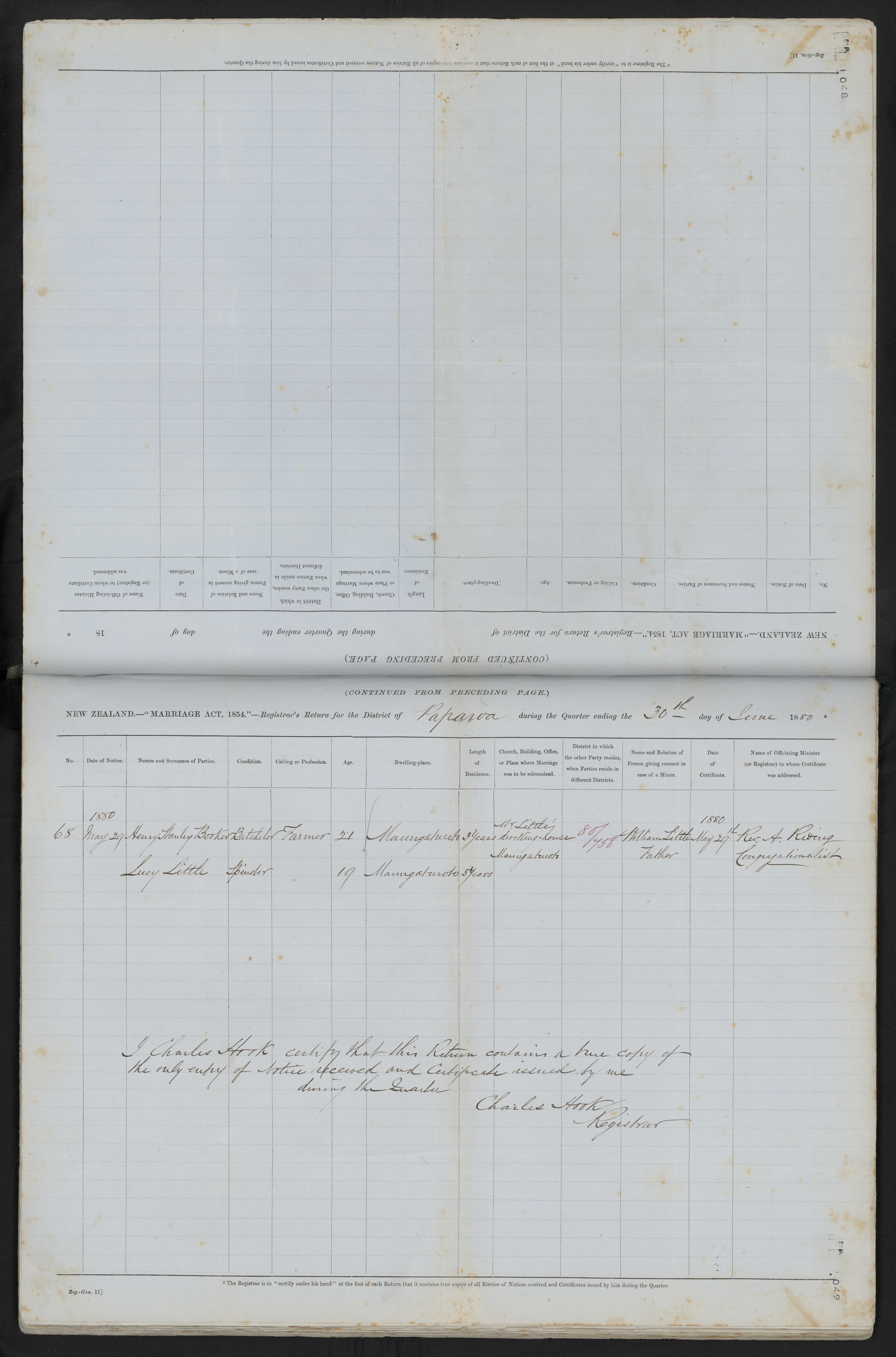 Marriage Place Mr Little's dwelling-house Maungaturoto