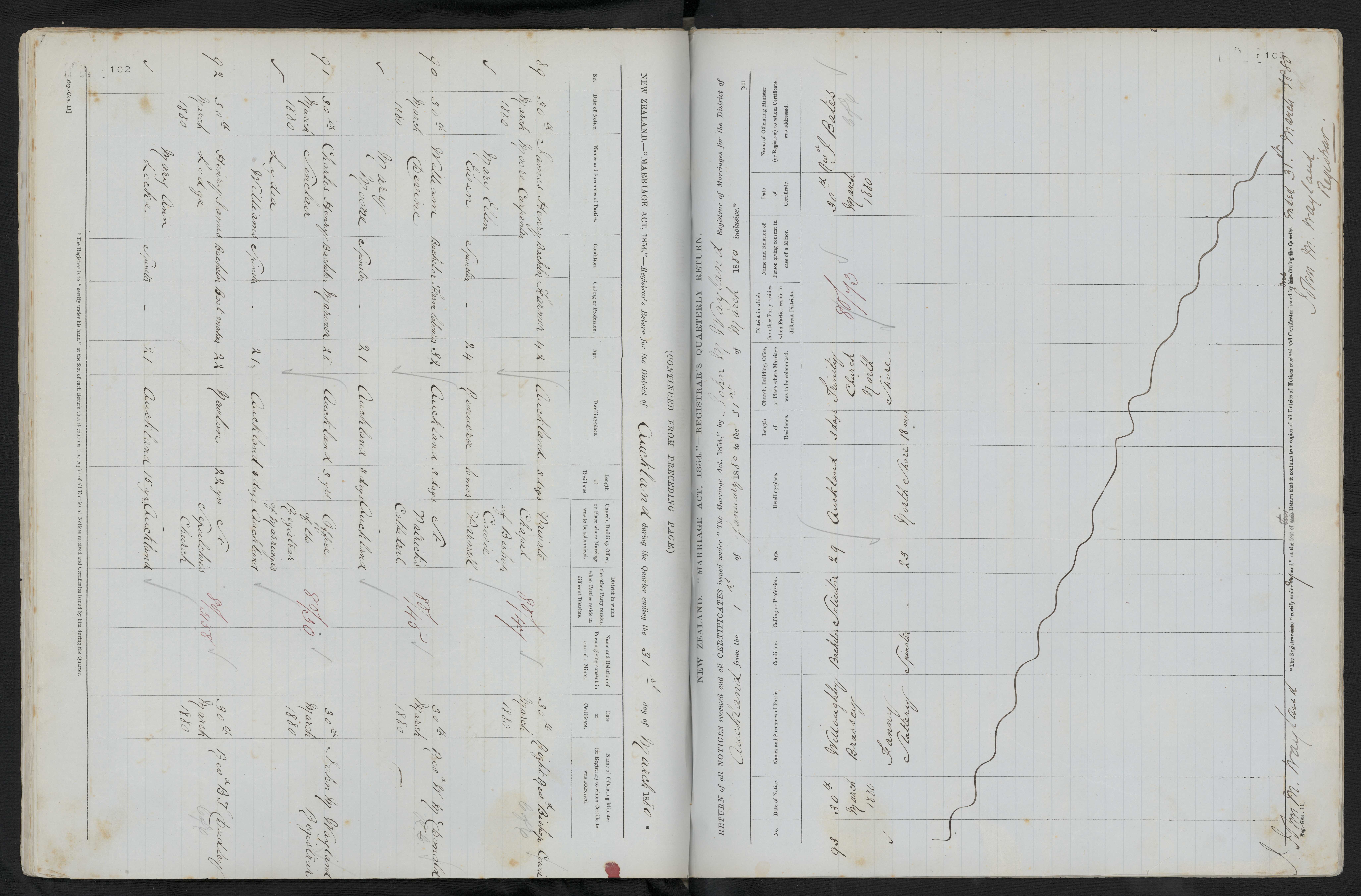 Office of the Registrar of marriages Auckland 80/30 30 March 1880 John M Wayland Registrar