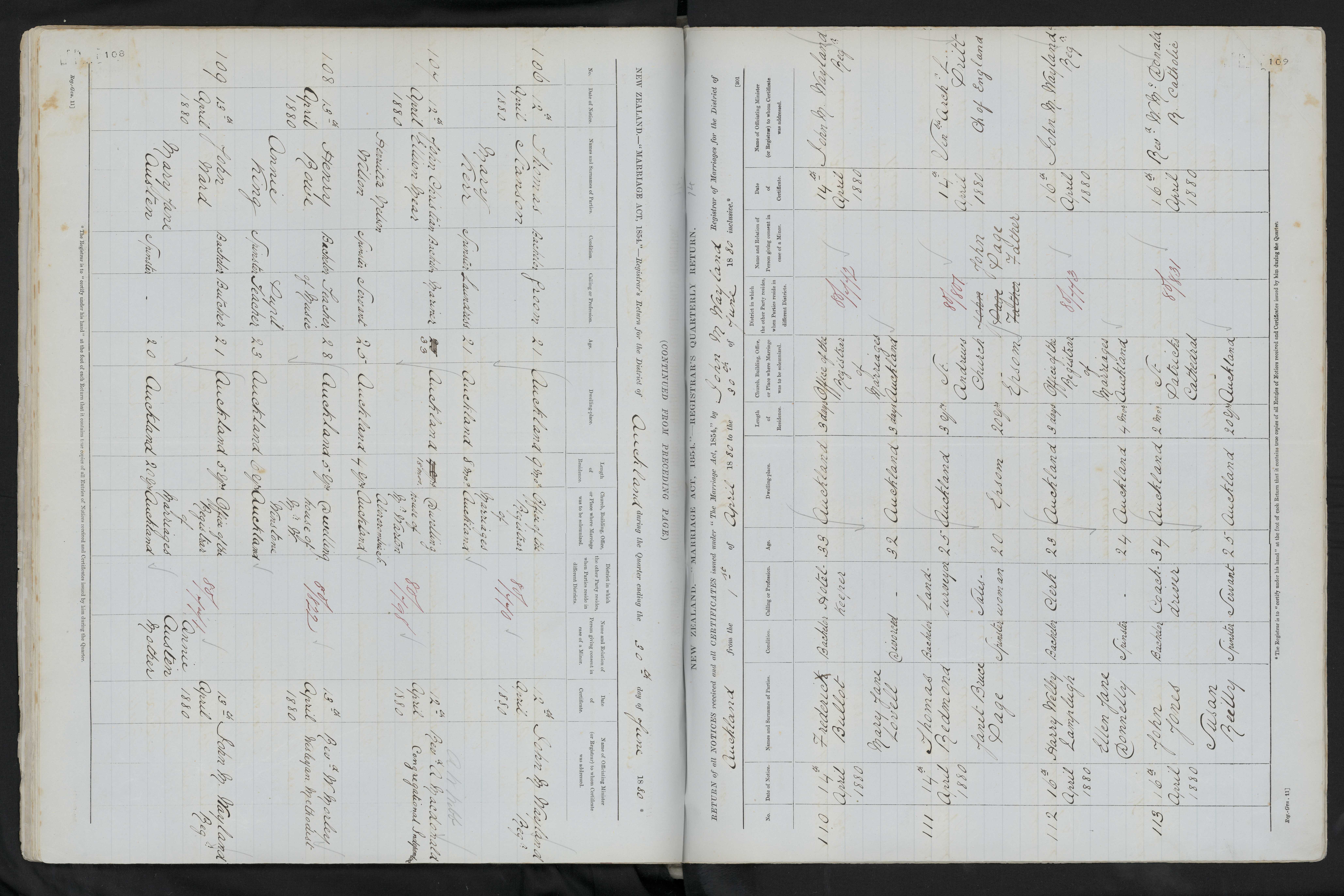 Office of the Registrar of marriages Auckland 81/440 12 April 1880 John M Wayland Reg