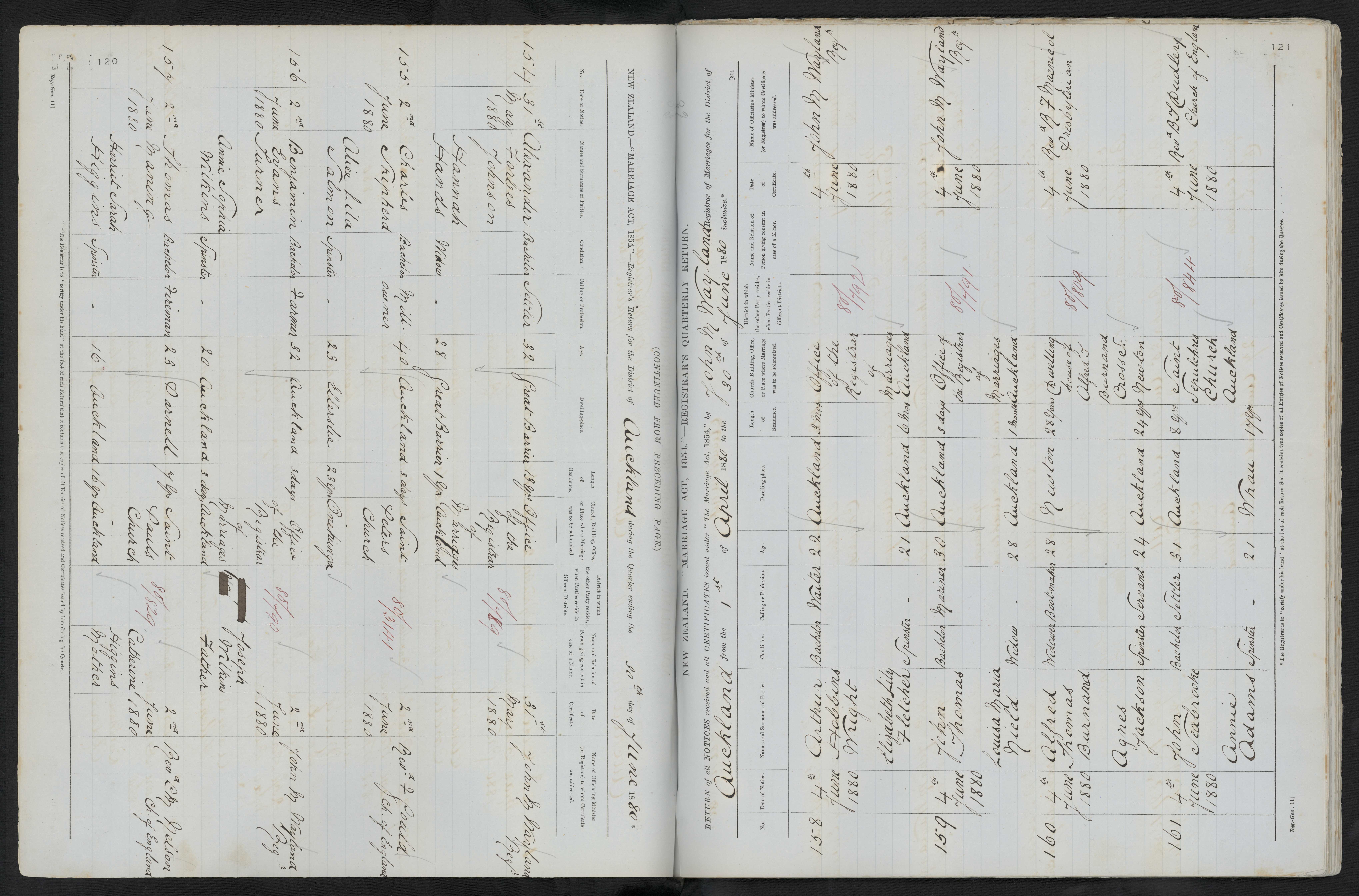 Office of the Registrar of marriages Auckland 80/142 4 June 1880 John Wayland Reg