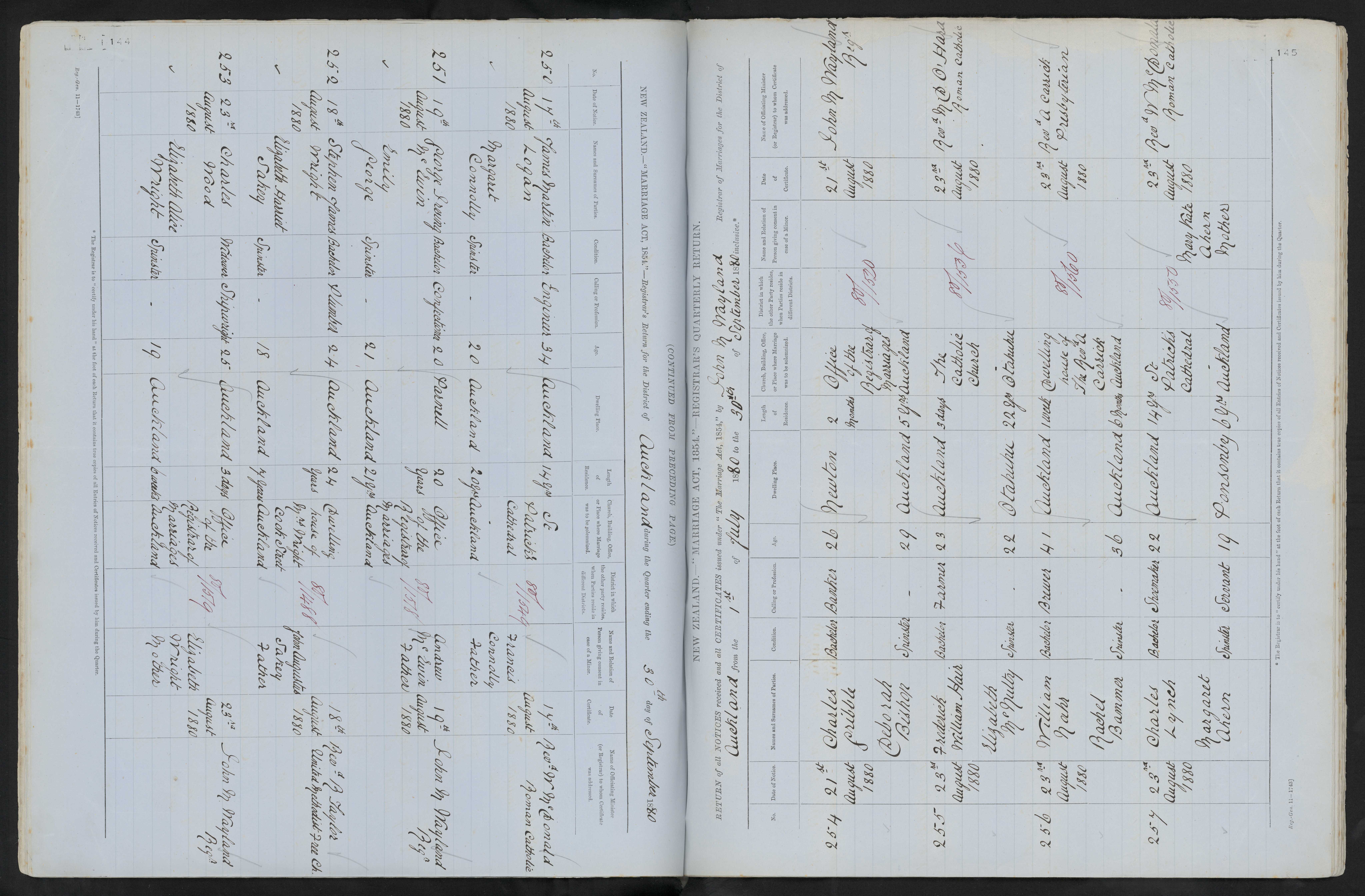 Office of the Registrar of Marriages Auckland 80/1578 Andrew McEwin, father 19 August 1880 John Wayland Reg
