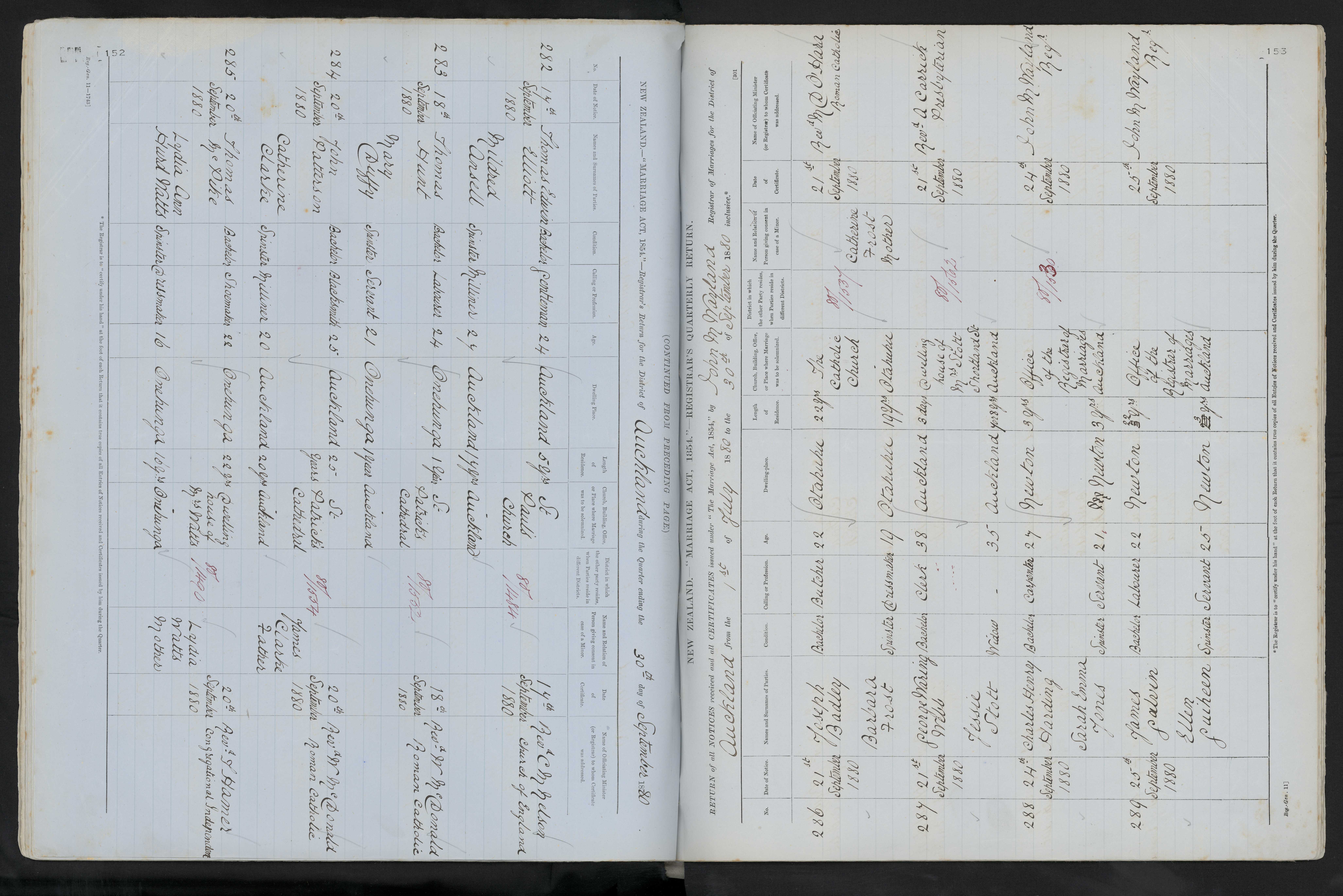 Office of the Registrar of Marriages, Auckland 25 September 1880 John M Wayland, Reg