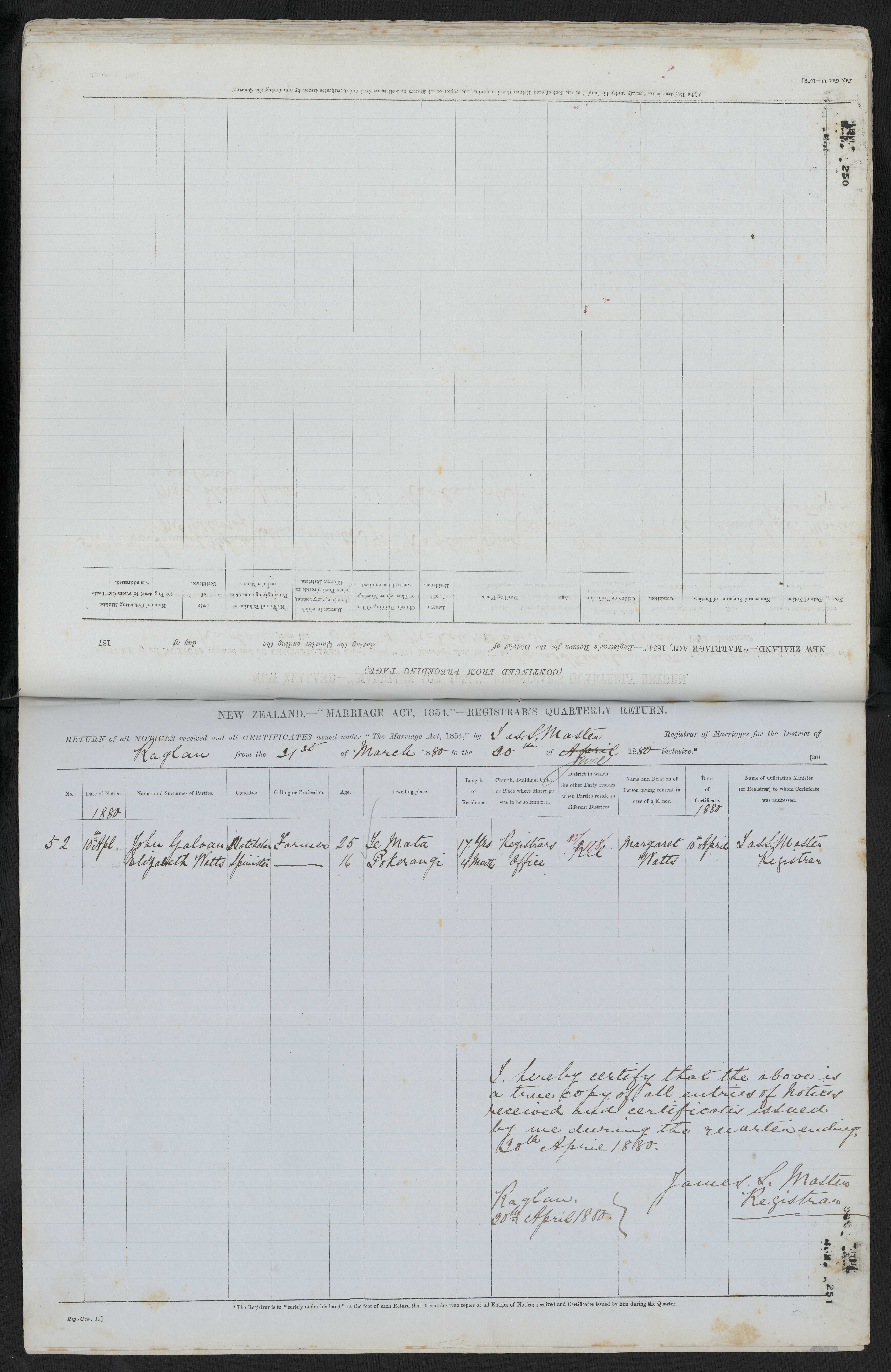 Registrars Office 80/118 Margaret Watts, Mother 10 April 1880 James Master Registrar