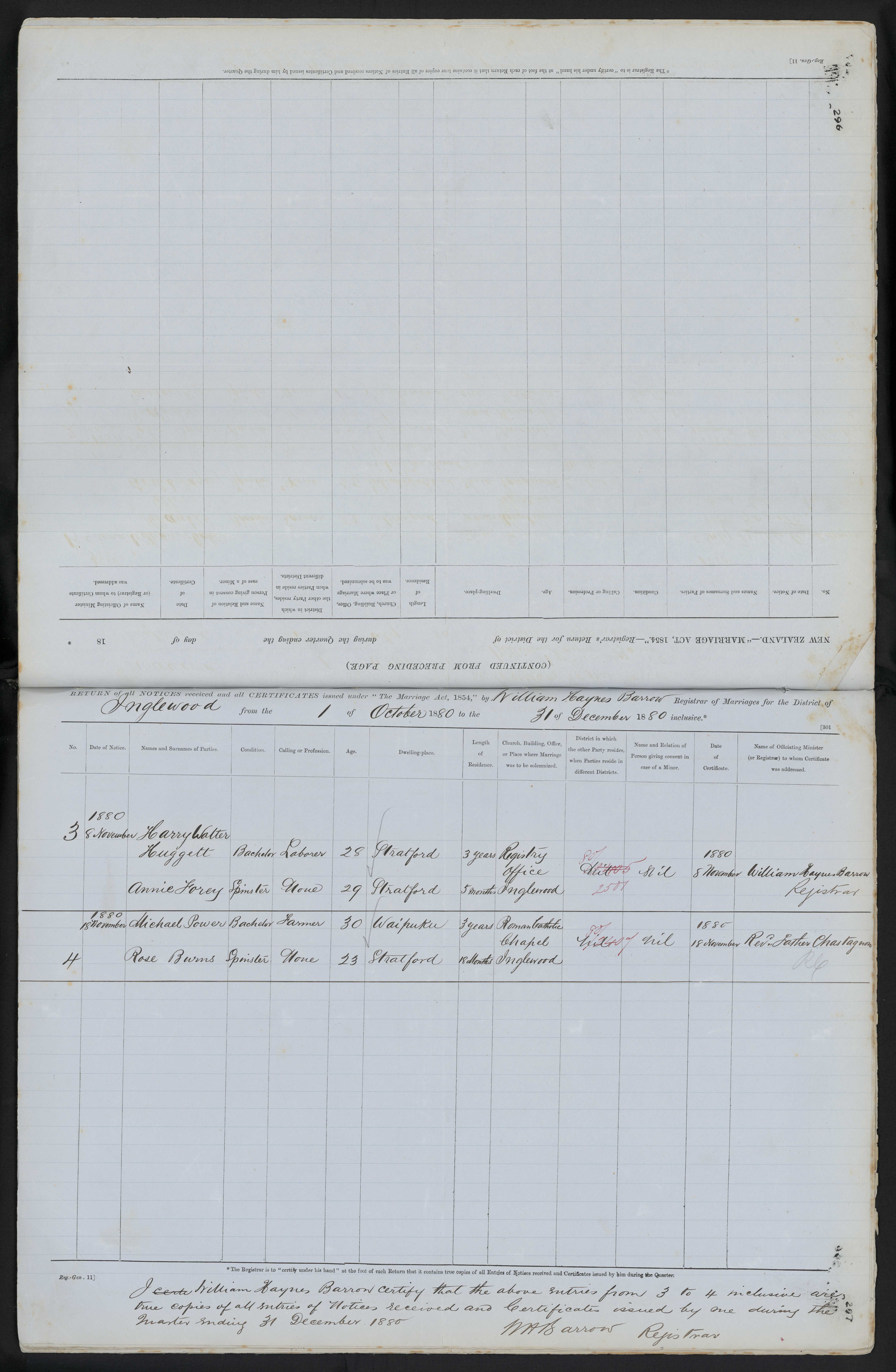 Registry Office Inglewood 255/77 8 November 1880 William Haynes Barrow Registrar