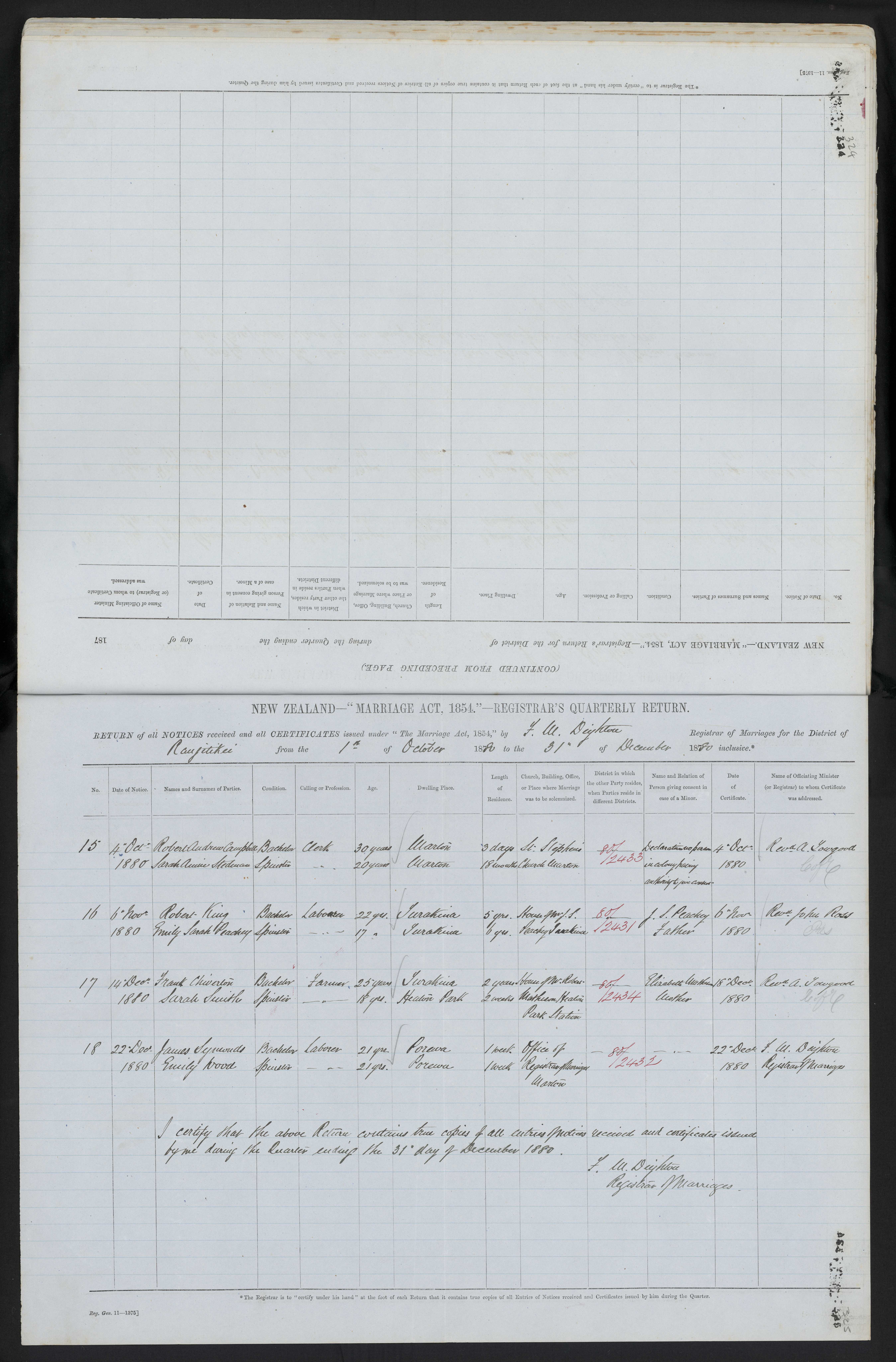 Office of Registrar Marriages Marton 80/2432 22 December 1880 F. W. Deighton Registrar Marriages