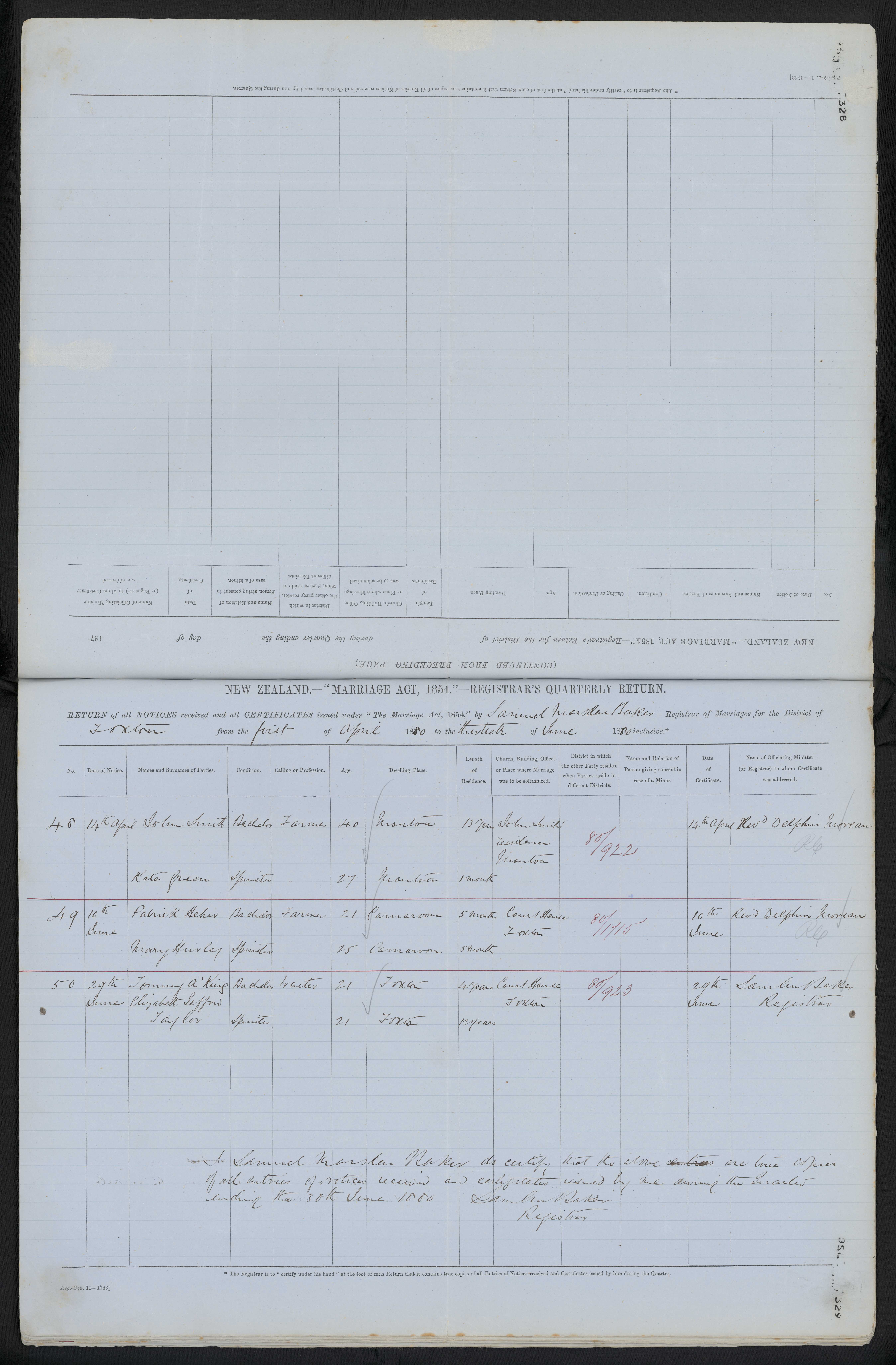 Court House Foxton 80/923 29 June 1880 Samuel Baker Registrar