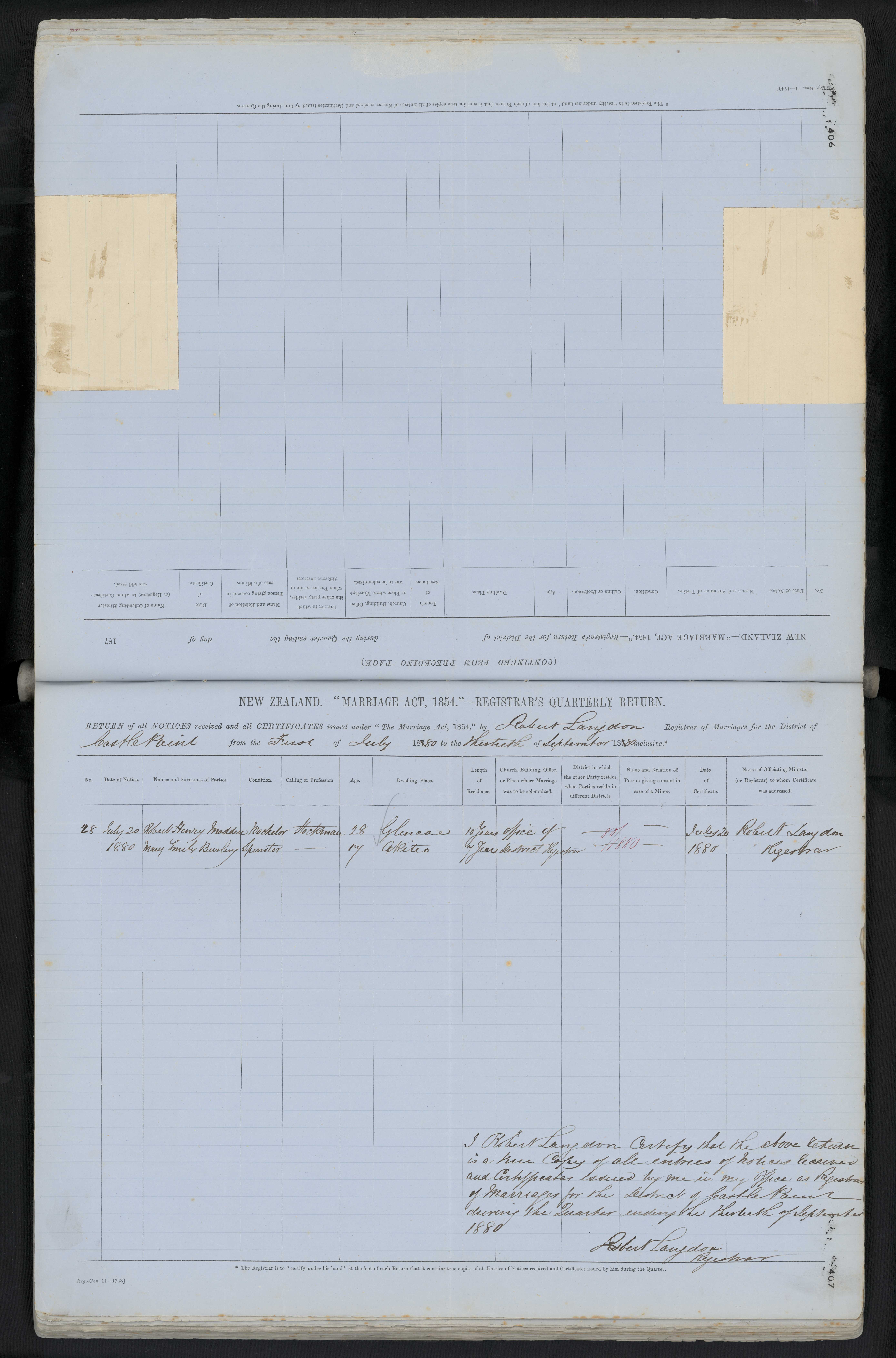 Office of Robert Lampson Grey Street Napier 802/1880 20 July 1880 Robert Lampson Registrar