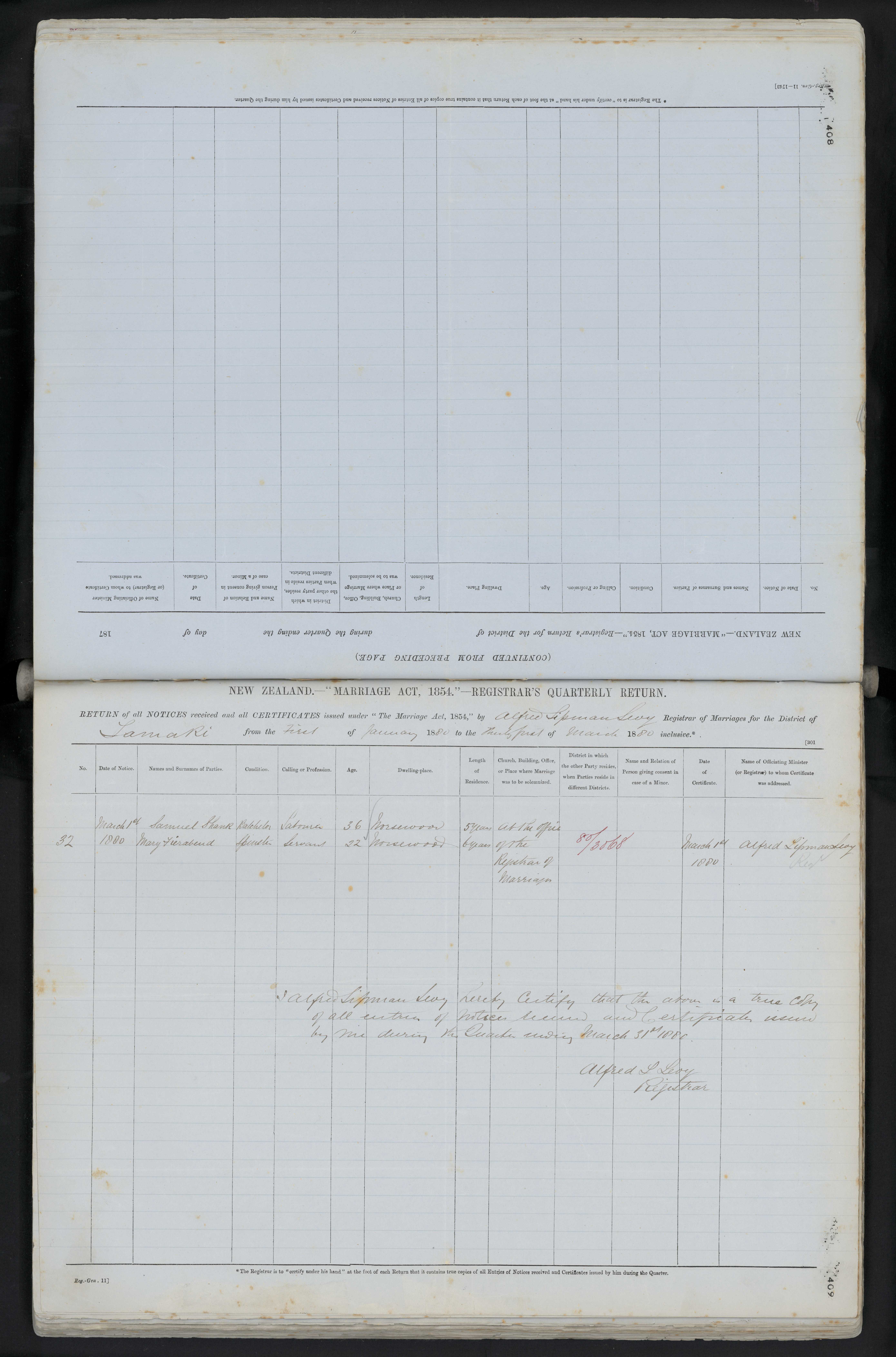 at the office of the Registrar of Marriages 80/3868 March 1880 Alfred Lipman Levy