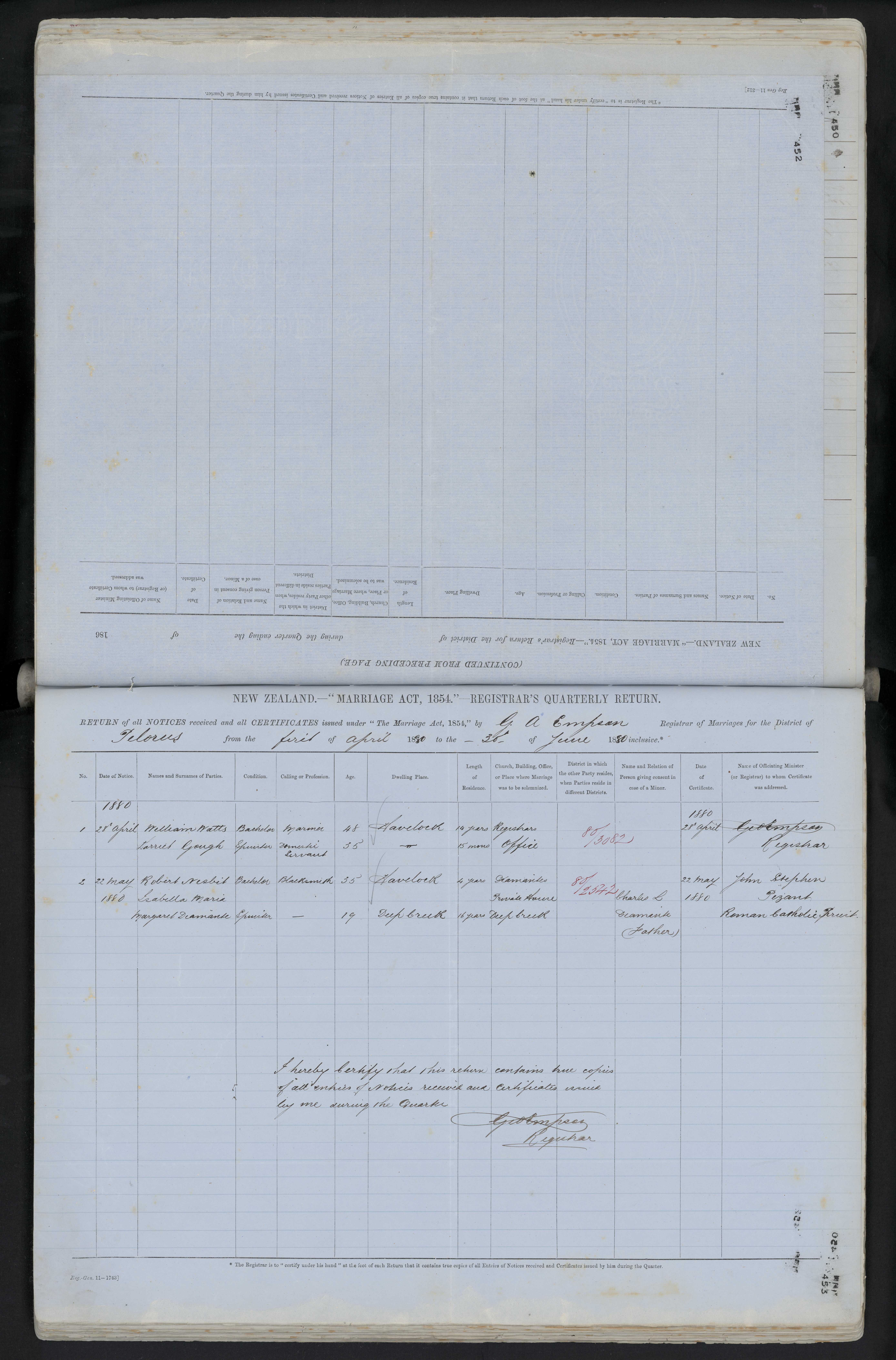 District of Pelorus Quarter ending Apr - Jun Registrar George A. Empson