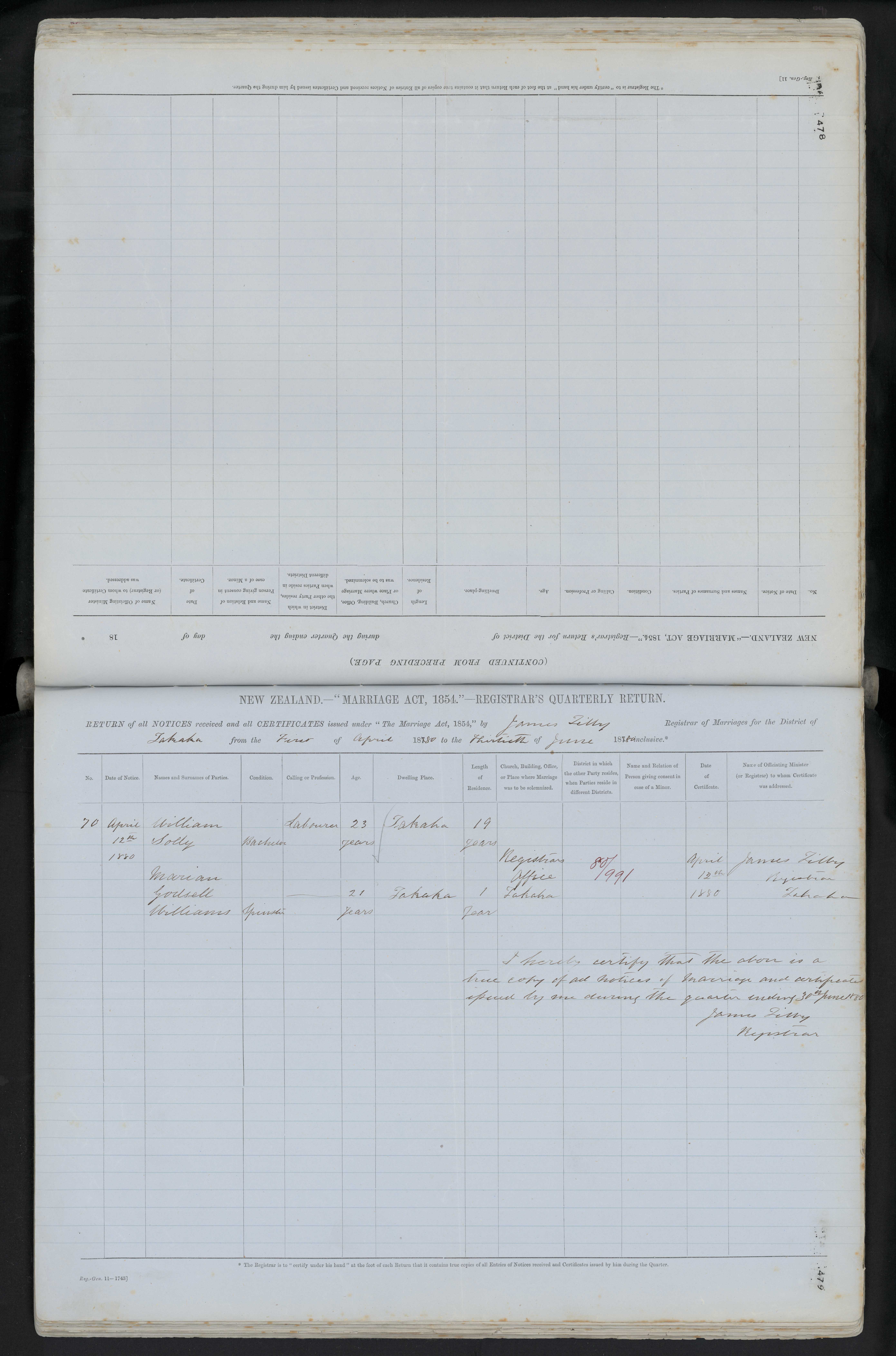 Registrars Office Takaka 80/191 12 April 1880 James Tilly Registrar Takaka