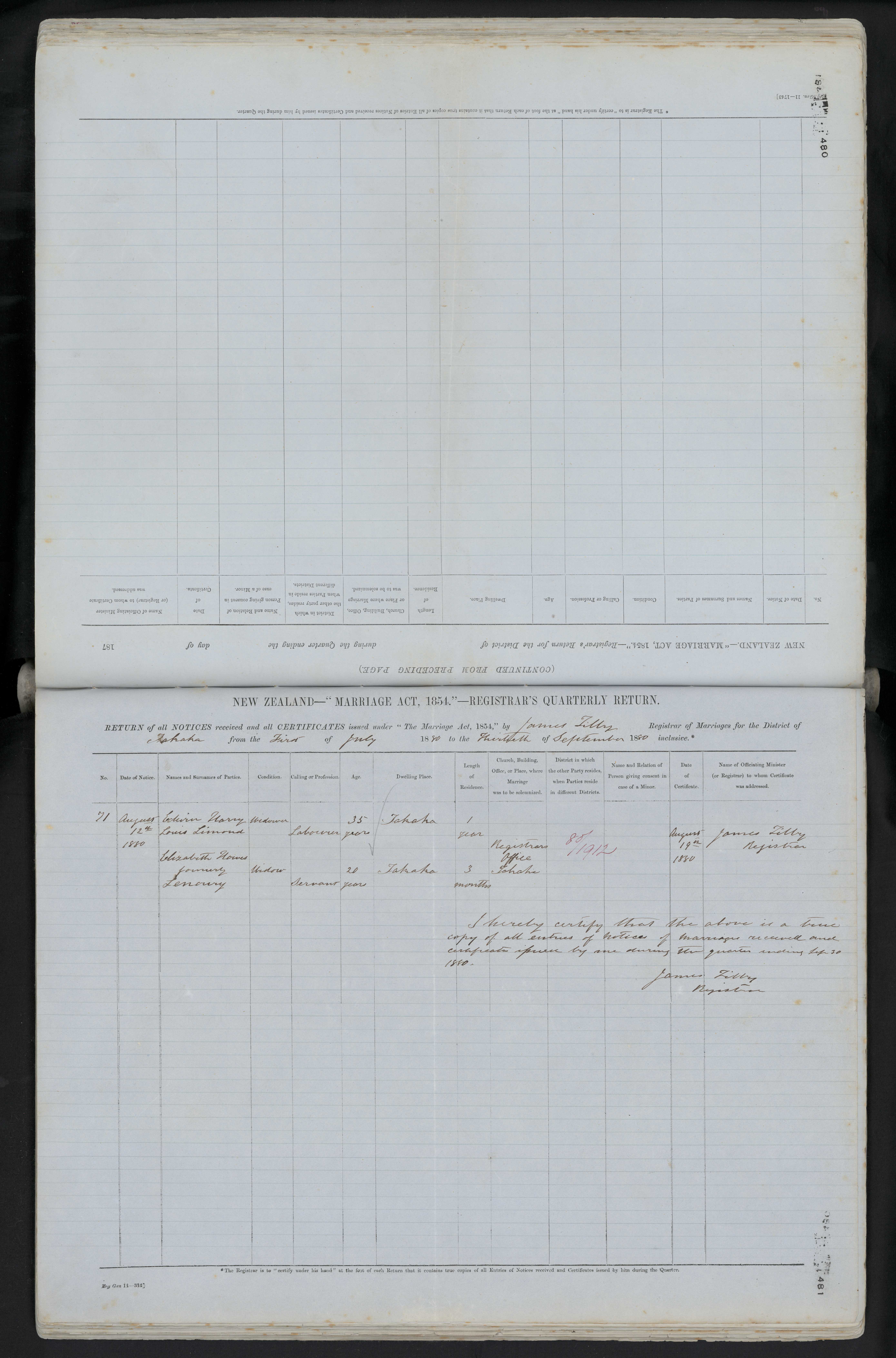 Registrars Office Takaka 80/1912 19 August 1880 James Tilly Registrar