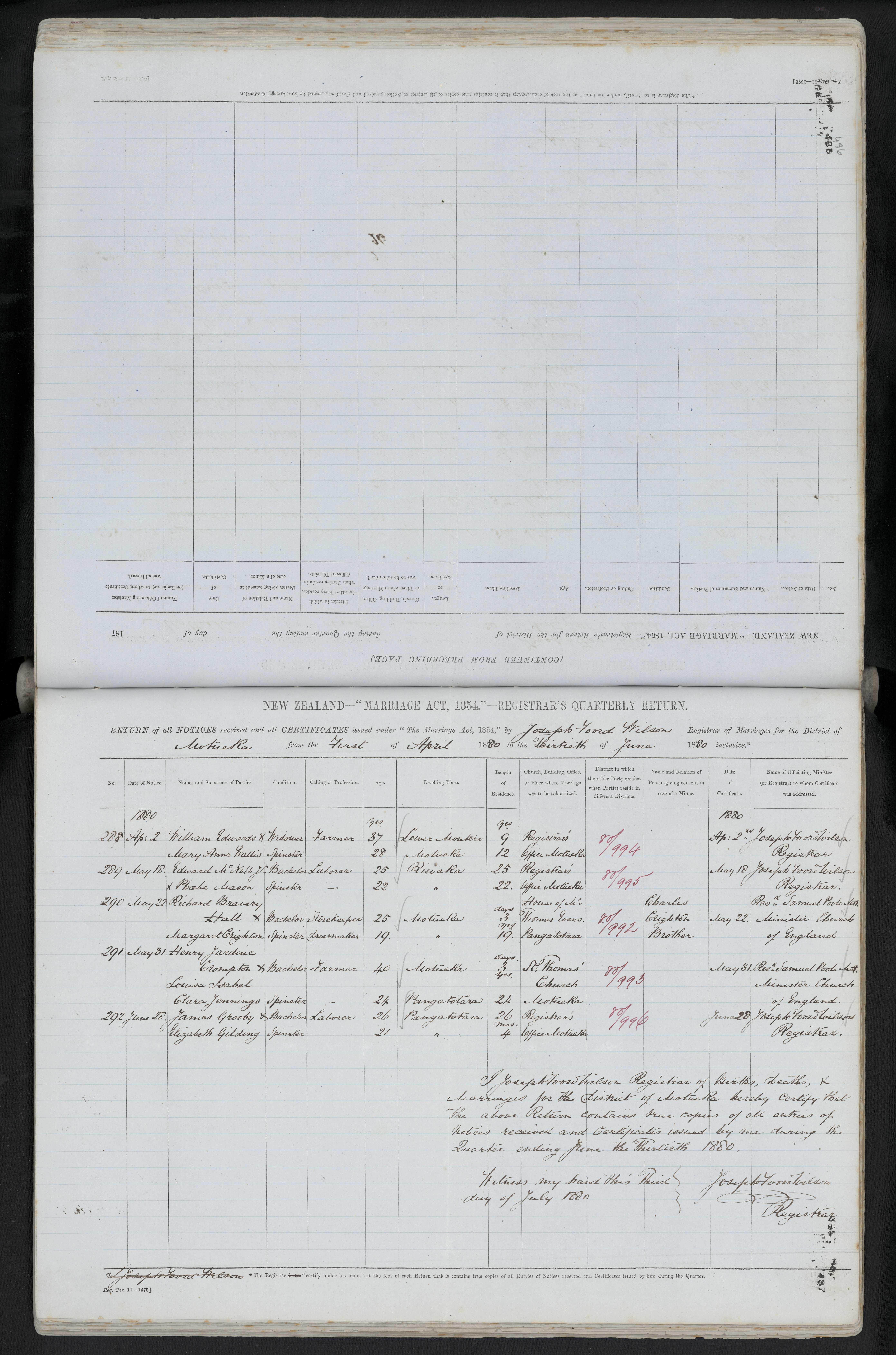 Registrar's office, Motueka 80/996 28 June 1880 Joseph Foord Wilson Registrar