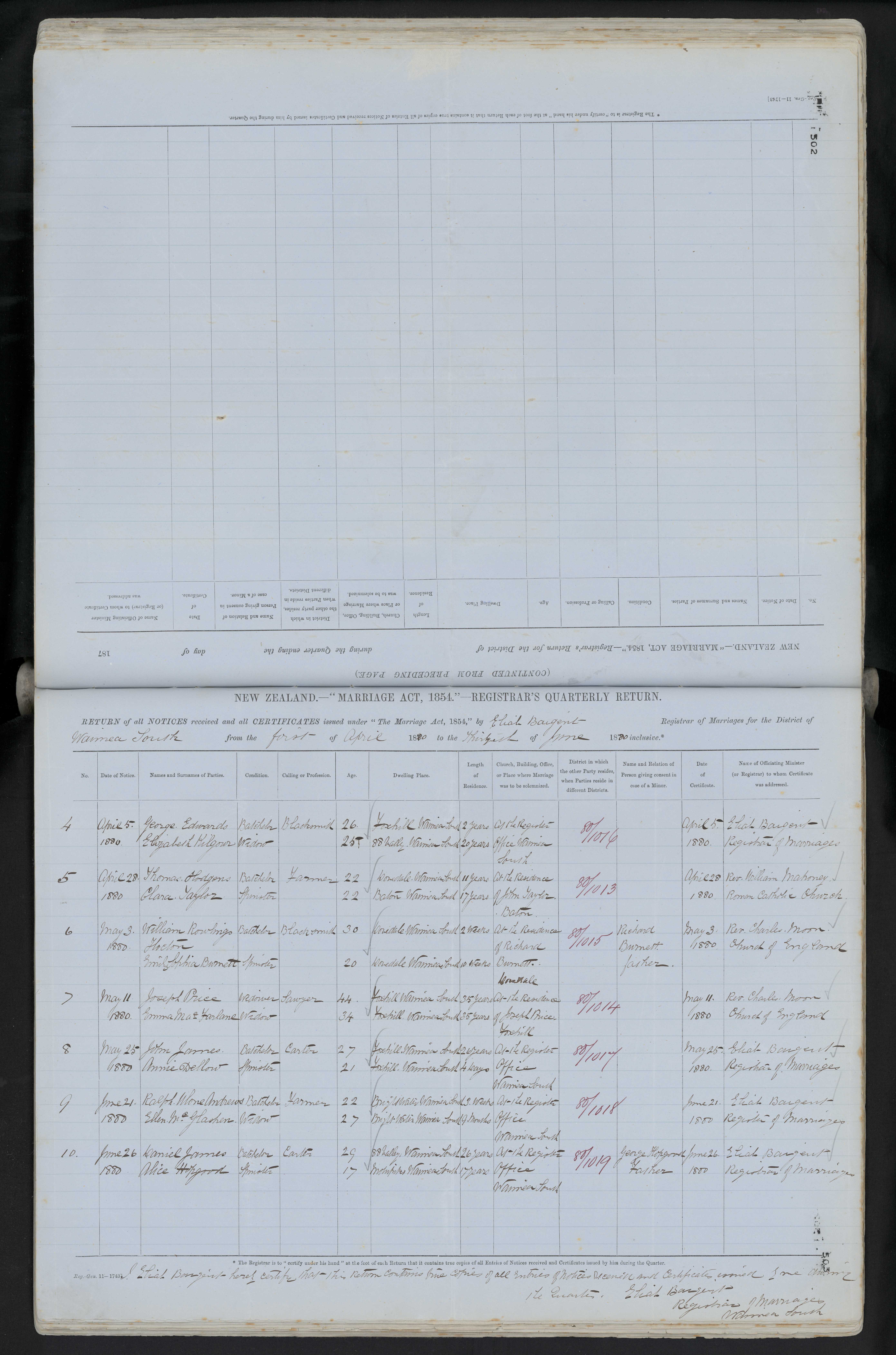 At the Register Office Waimea South | 80/1019 | George Hopgood father | 26 June 1880 | Eliab Baigent Registrar of marriages | |||||||||||||||||||||||||||||||||||||||||||||||||
