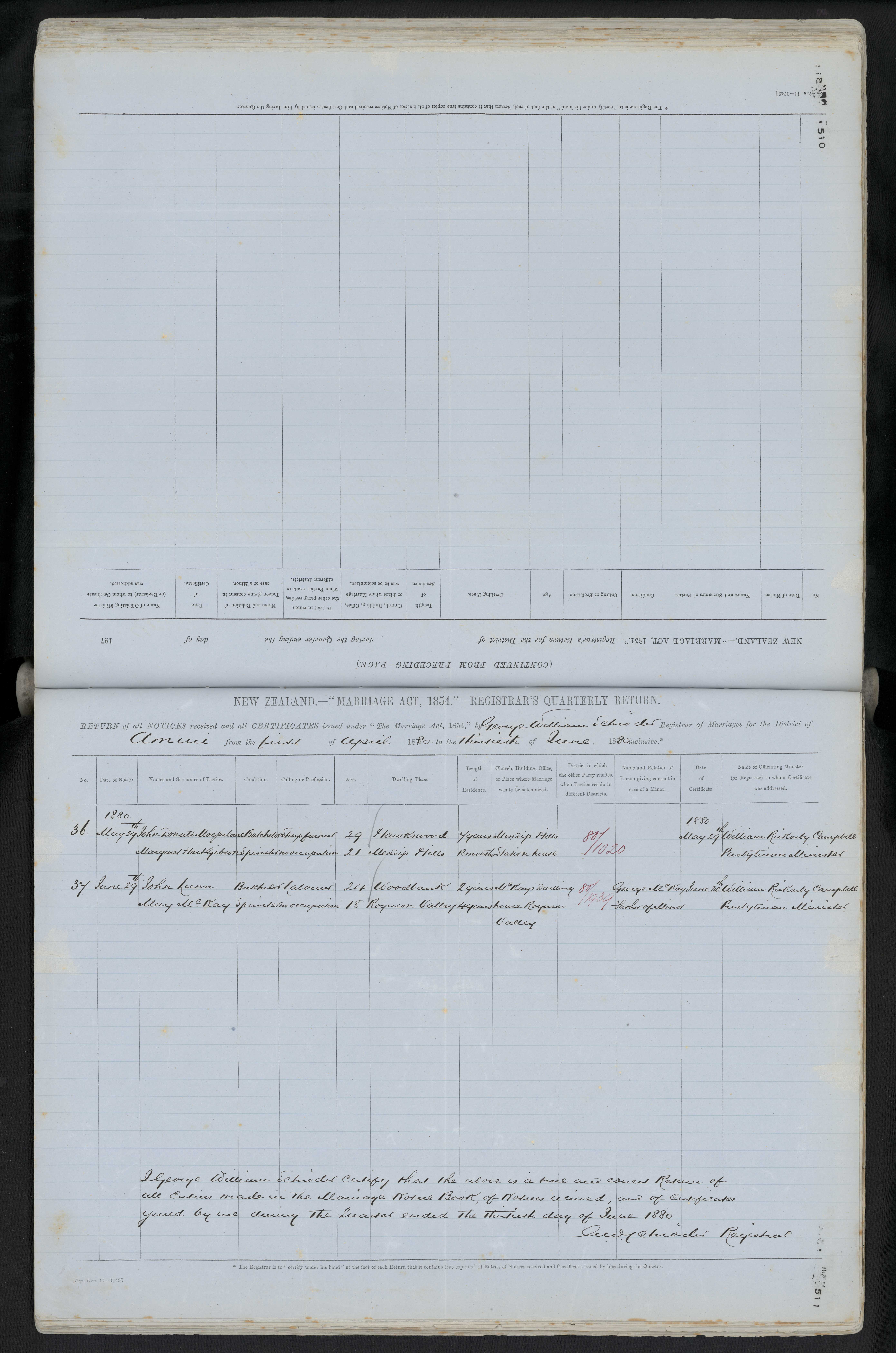 [UNCLEAR] Station house 88/11020 29 May 1880 William Rickarby Campbell Presbyterian Minister
