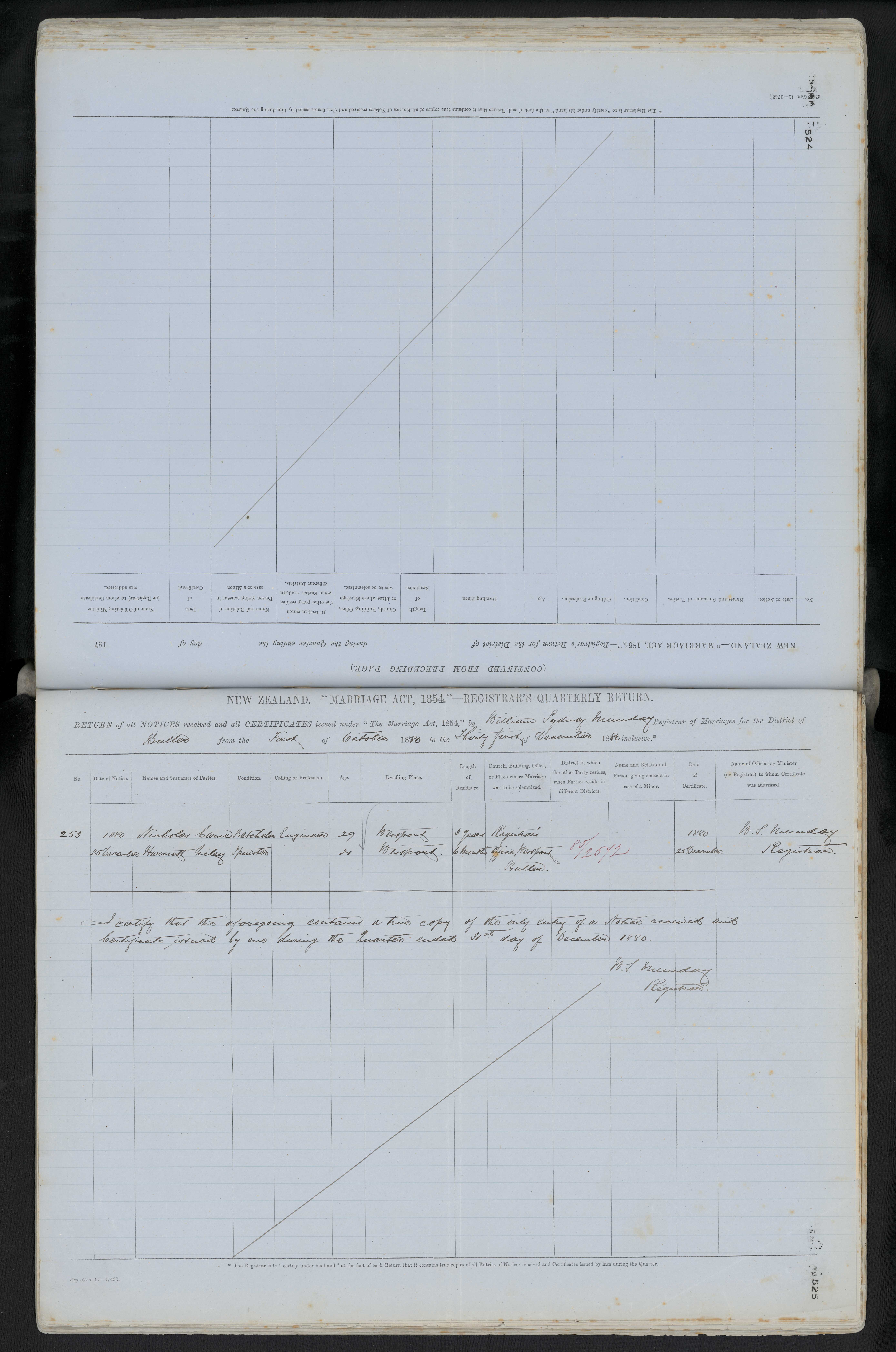 Registar's Office, Westport, Buller 80/2572 25 December 1880 W. S. Munday Registrar