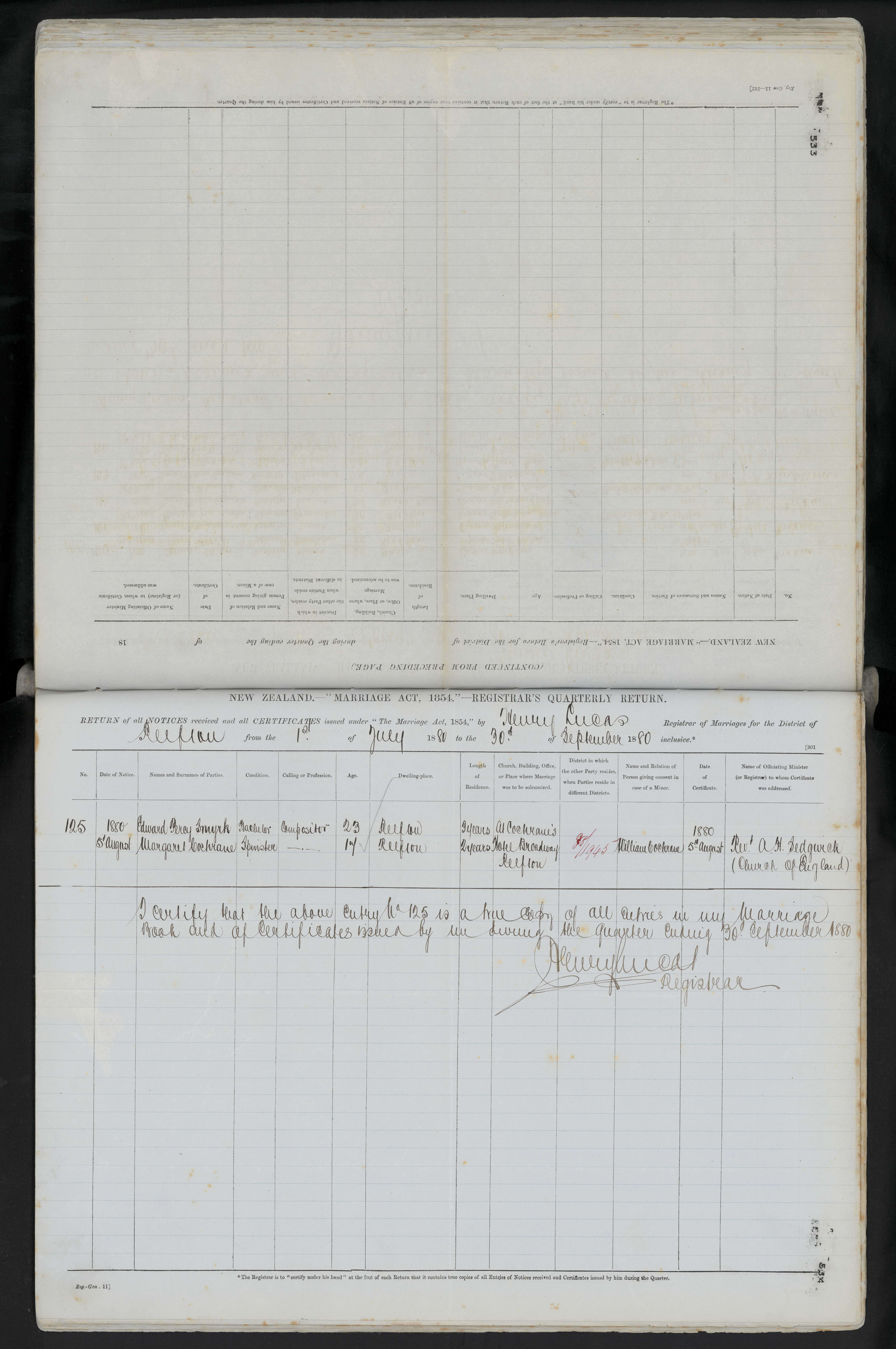 Cochrane's Hotel Broadway Reefton 72/145 William Cochrane 5 August 1880 Rev. A.H. Sedgwick (Church of England)