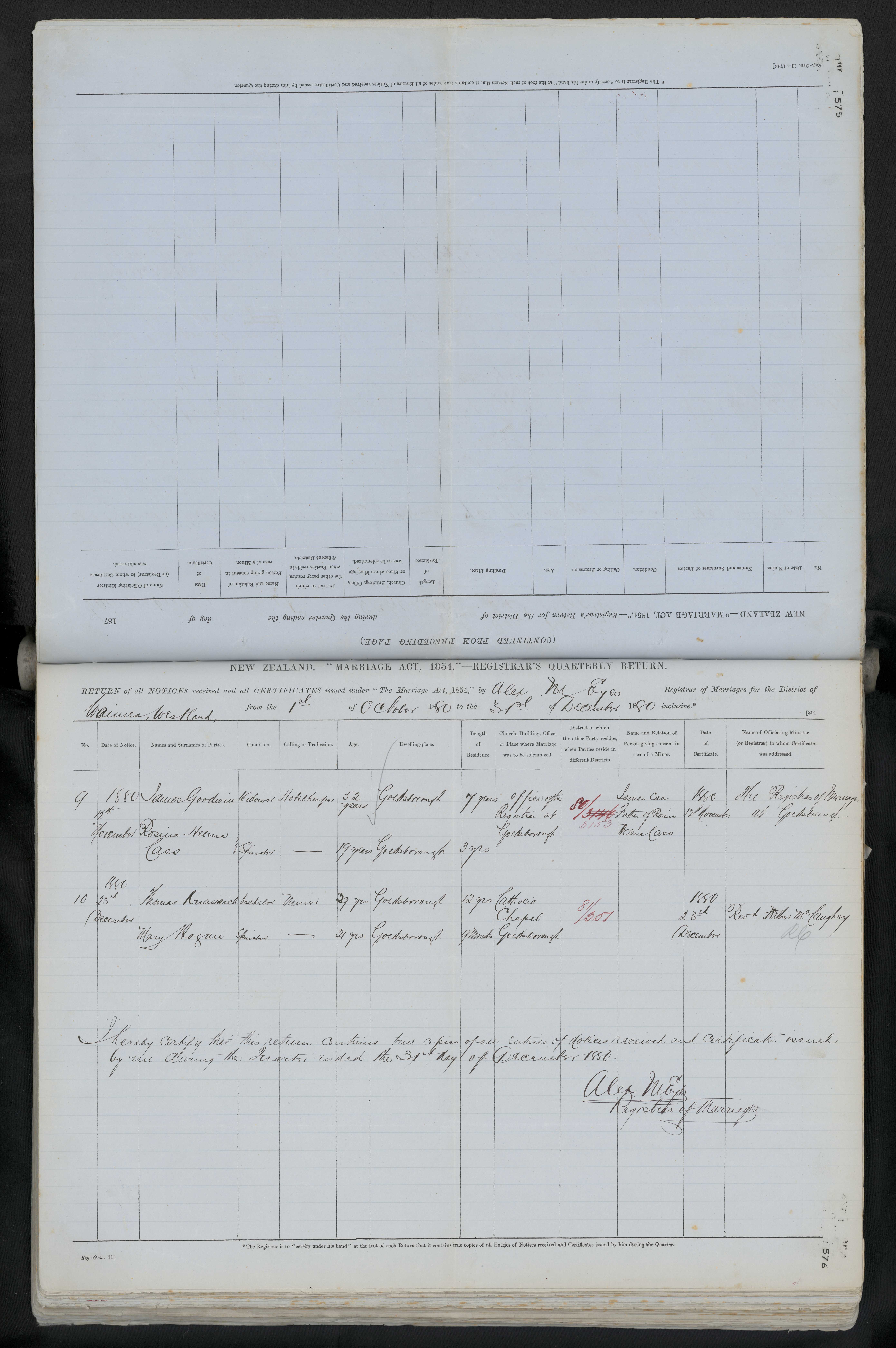 Office of the Registrar of Goodstrough 88/3153 James Cass, father of Rosina Helena Cass 12th November 1880 The Registrar of Marriages at Goodstrough