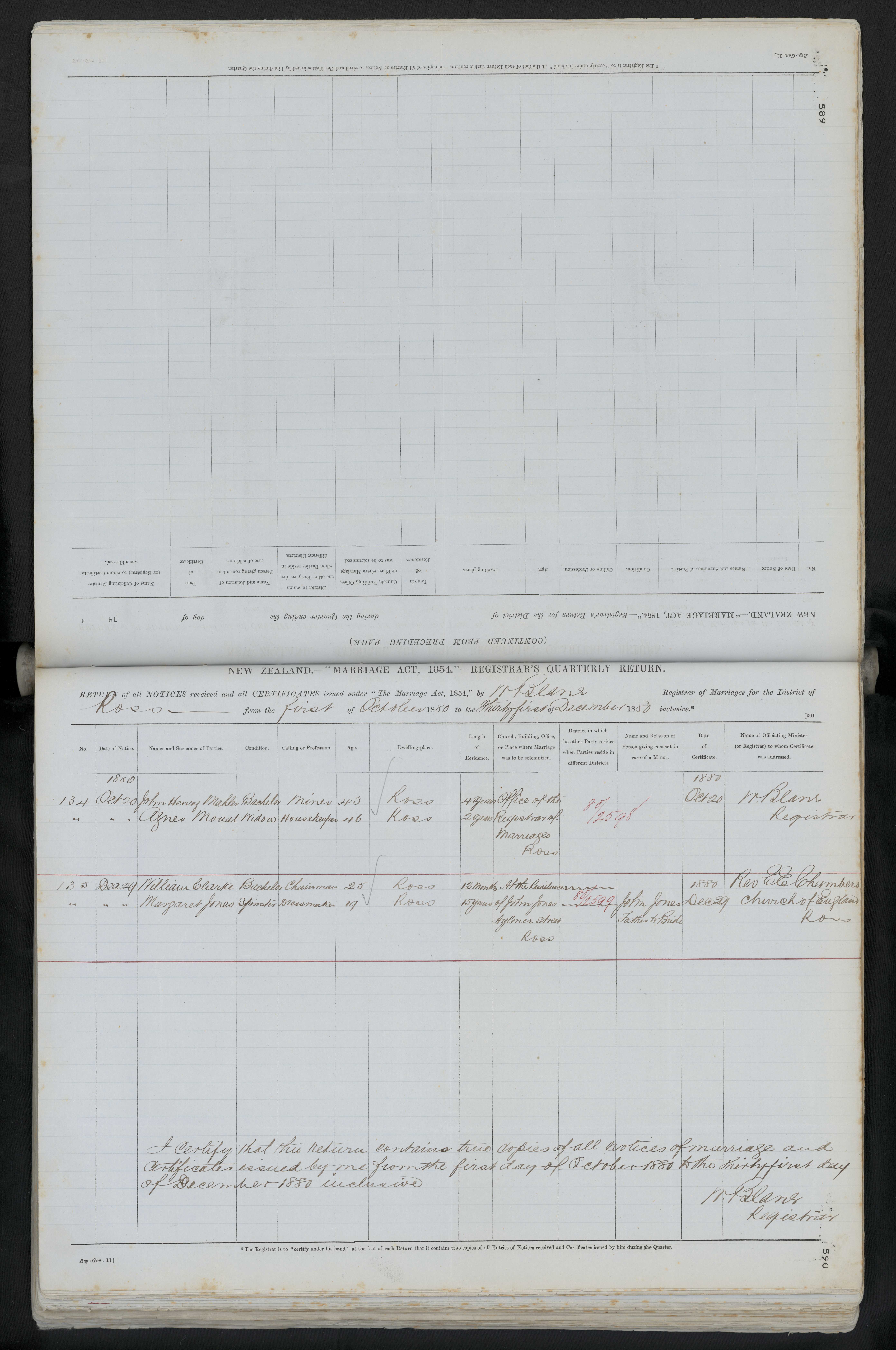 Office of the Registrar of Marriages Ross 801/258 20 October 1880 M. Blanz Registrar