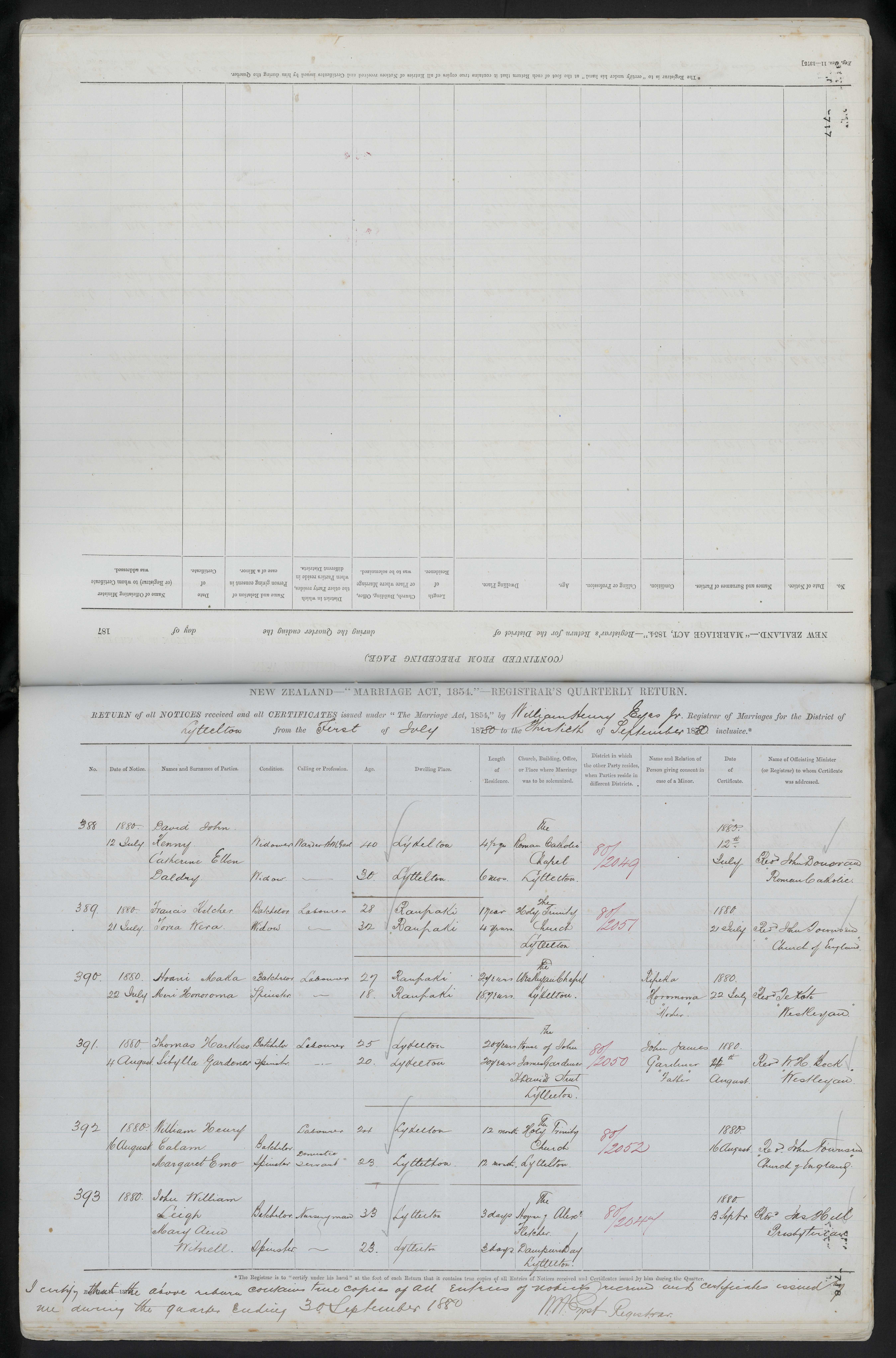 Holy Trinity Church Lyttelton | 807/12052 | 16 August 1880 | Rev John Somers Church of England | ||||||||||||||||||||||||||||||||||||||||||||||||||