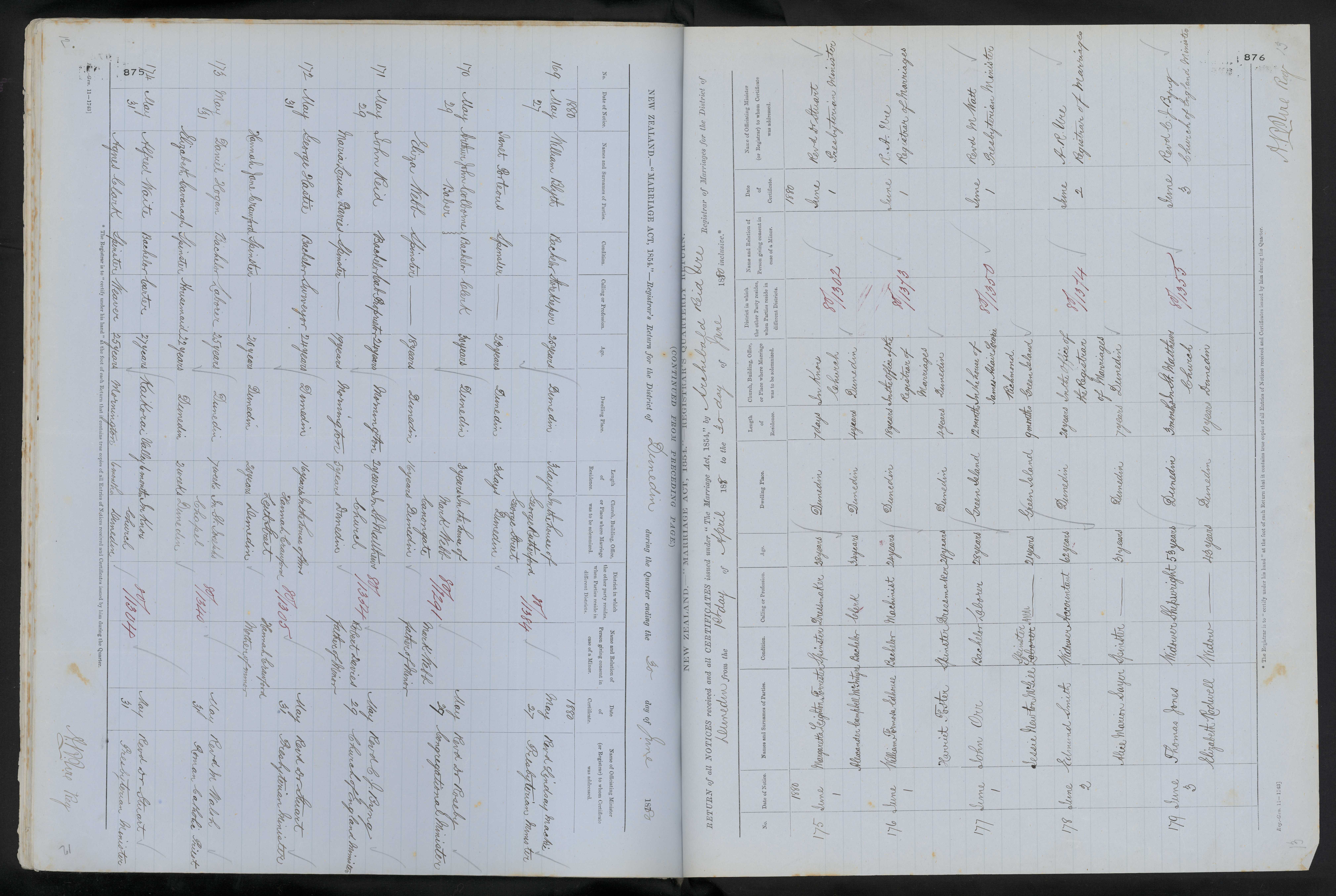 In the office of the Registrar of Marriages Dunedin 80/1313 1 June 1880 R. A. Ure Registrar of marriages