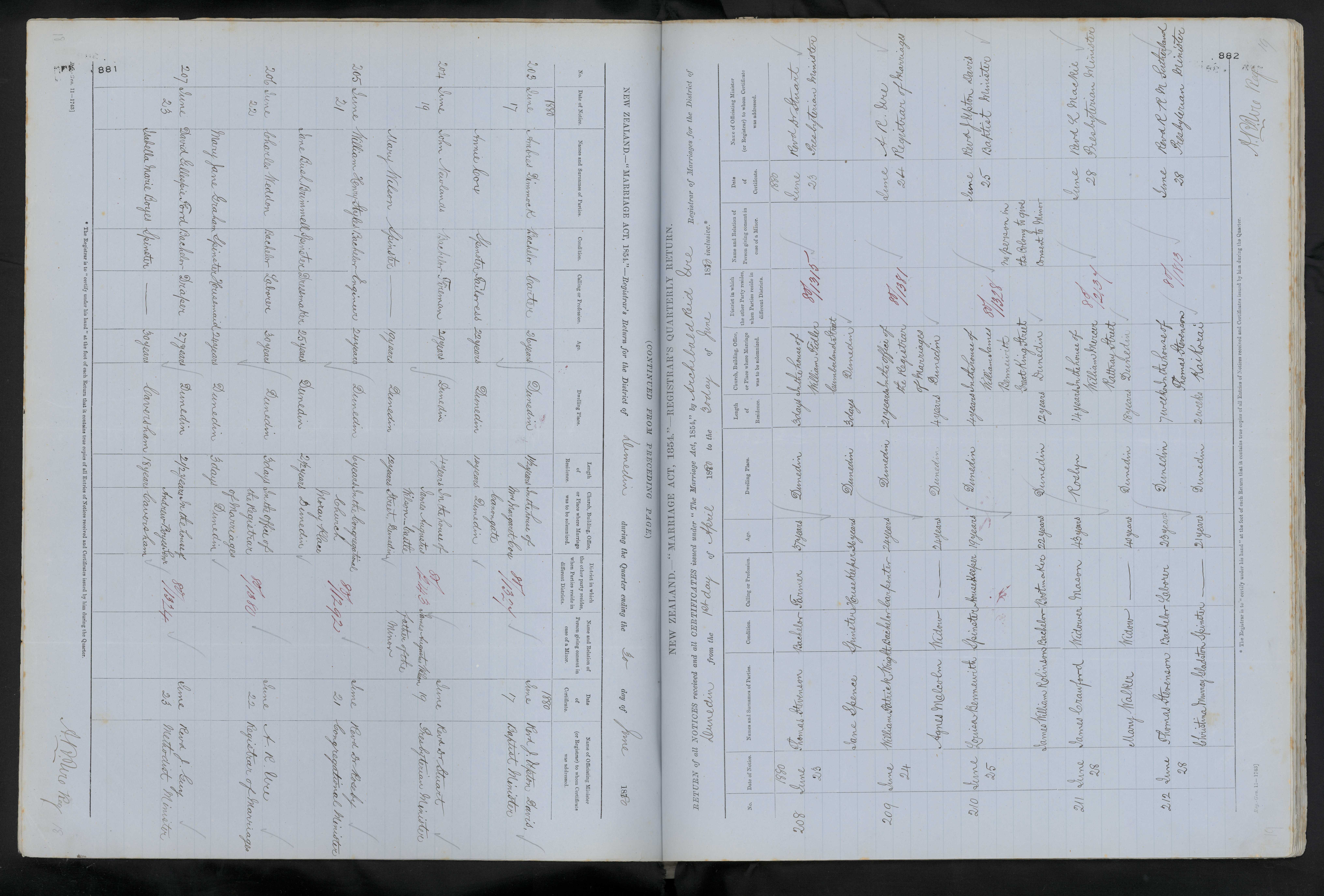 In the house of James Augustus Wilson...Castle Street, Dunedin | 88/2143 | James Augustus Wilson, father of the minor | 19 June 1880 | Dr Stuart Presbyterian Minister | |||||||||||||||||||||||||||||||||||||||||||||||||